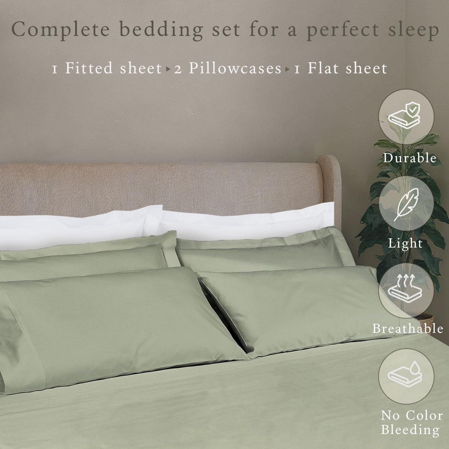 Threadmill 5-Star Hotel 500 Thread Count Best Bed Sheets, 100% Cotton Sheets Set for Queen Size Bed, Smoother Than Egyptian Cotton Claims, 4 Pc Set with Deep Pockets (Sage Green)