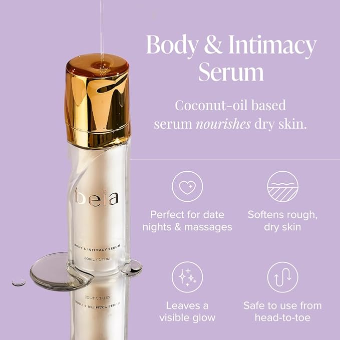 Beia Coconut Oil for Skin - Body Massage Oil for Date Night - Soothing & Safe to Use for Women - Hydrating Moisturizer for Glowy Skin - Dermatologist Tested Fragrance Free-1 Fl Oz
