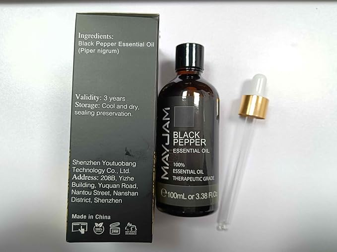 Black Pepper Essential Oil, MAYJAM Pure Essential Oils for Diffusers, 3.38FL.OZ/100ML Large Volume Black Pepper Essential Oil for Home Yoga Massage Use