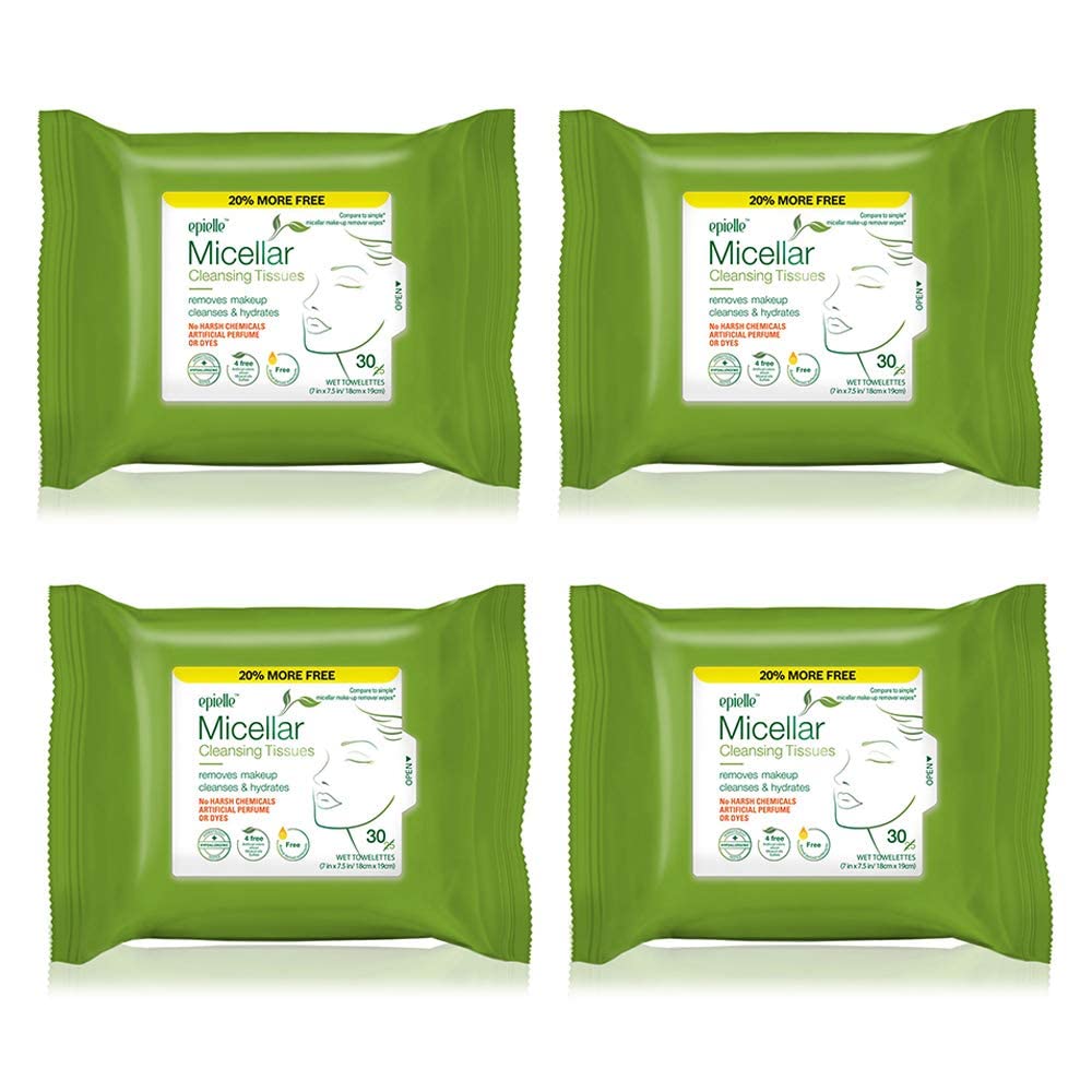 Epielle Micellar Makeup Remover Wipes, Gentle & Hydrating Daily Facial Cleanser Towelettes, Remove Dirt, Oil, Waterproof Mascara, Hypoallergenic & Alcohol-Free, 30 Count (Pack of 4)
