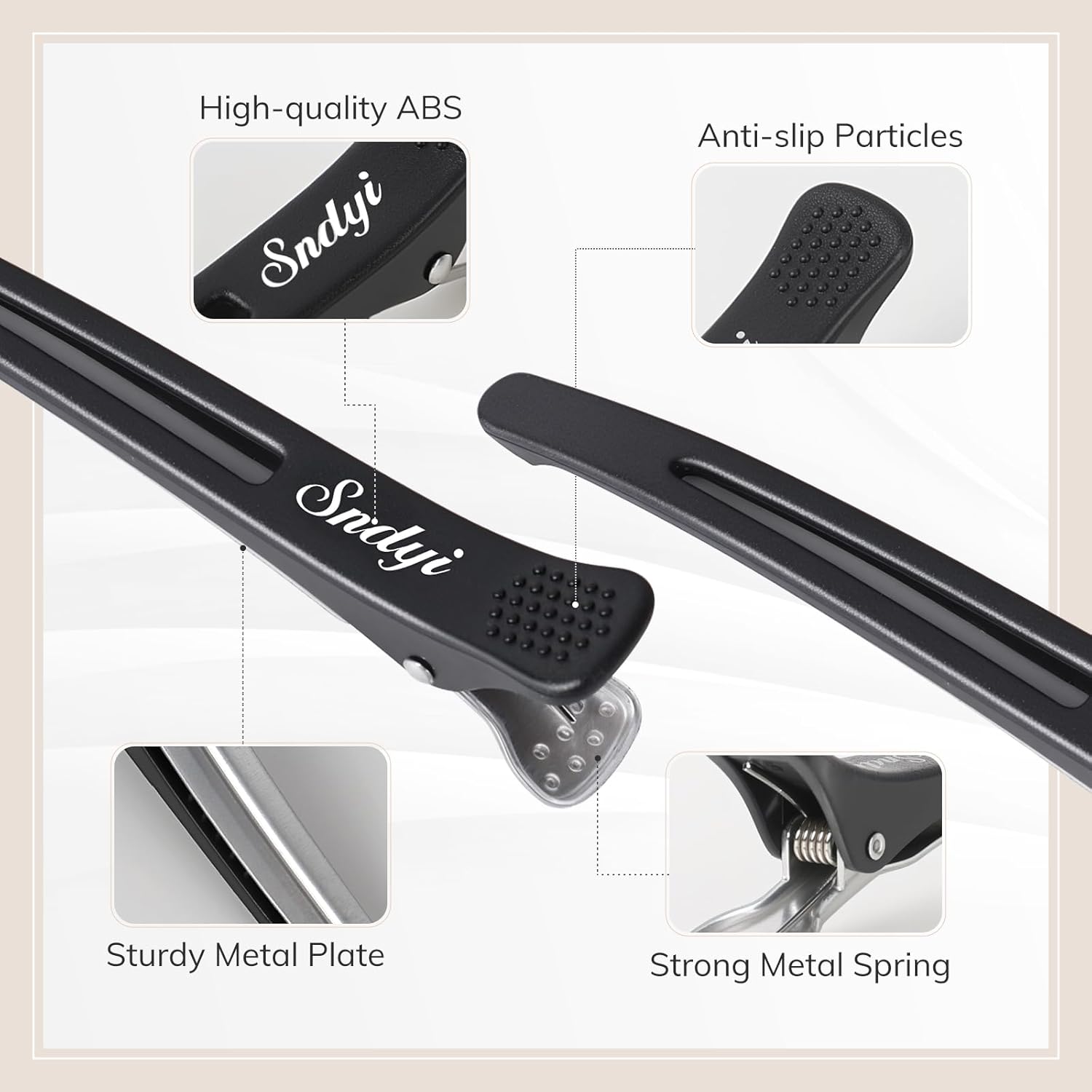 Sndyi Hair Sectioning Clips - Non-Slip Duck Billed With Silicone Band for Styling, Rollers - 6Pcs, Black - for Hairdressers, Barbers, Women, Men