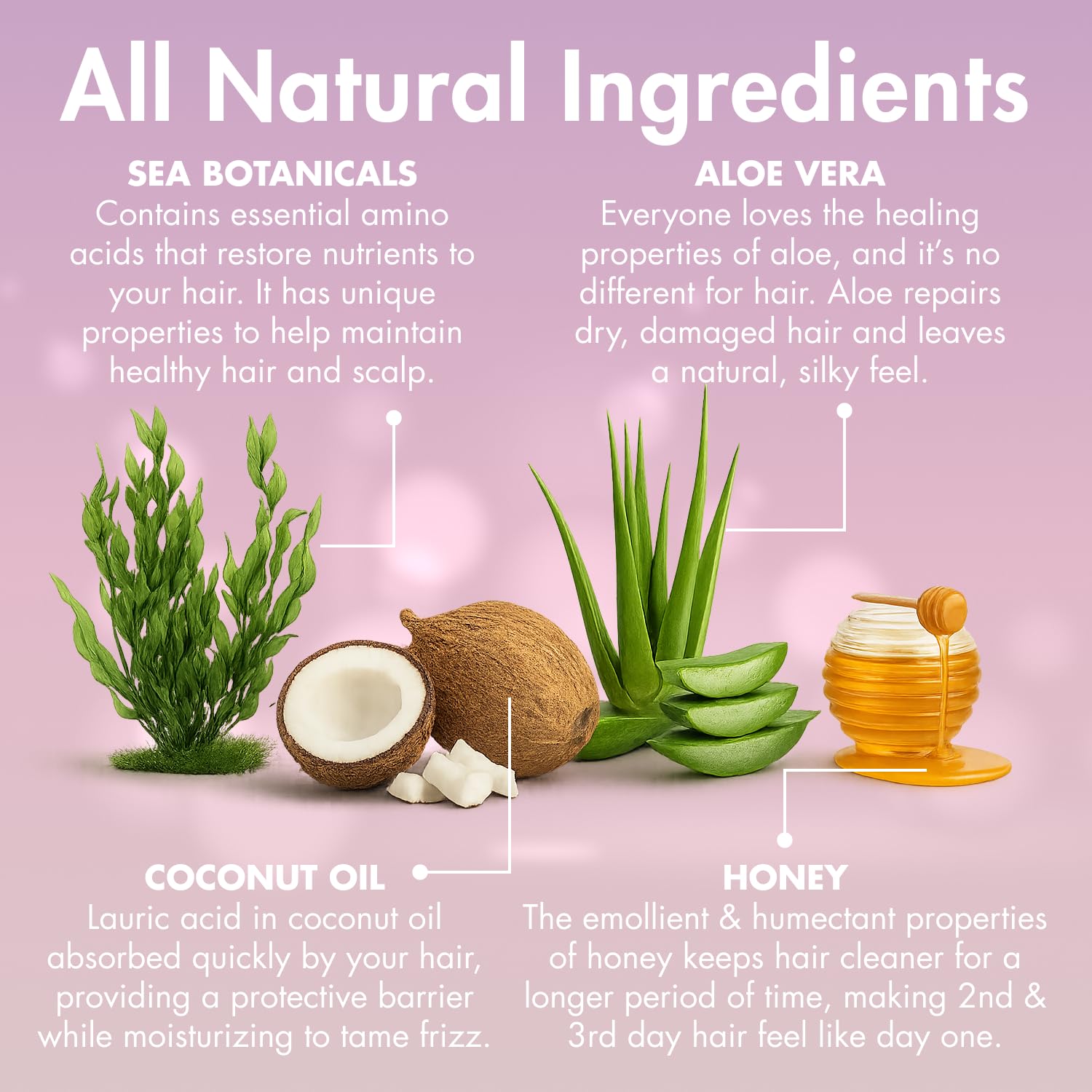 - CLEAN, JUNK-FREE FORMULA: Our hair care products are made without parabens, sulfates, silicones, phthalates, or dyes. Made with natural botanicals like honey, aloe and sea botanical, it keeps your hair & scalp healthier for a longer period of time.