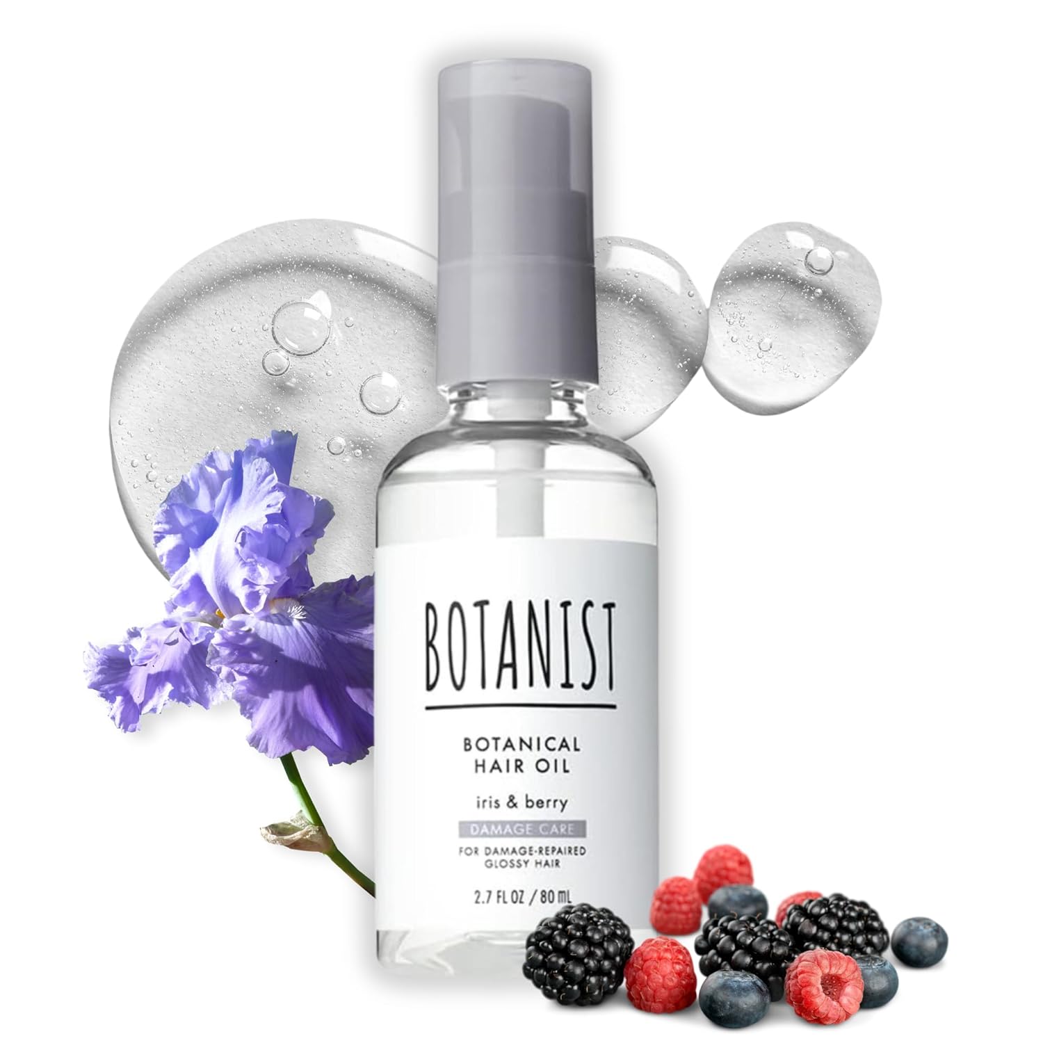 Botanist Organic Hair Oil for Frizzy, Damaged, Dry Hair Women & Men, Natural Scalp & Hair Oil Spray with Micro-Protein & Plant Extracts, Hair Care from Japan, DAMAGE CARE, Iris & Berry, 2.7 Fl Oz
