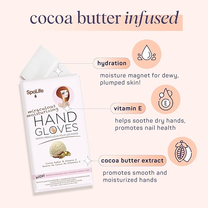 - MOISTURIZING HANDS: Give your hardworking hands the care they deserve with SpaLife Moisturizing Hand Gloves. This indulgent treatment provides your hands with the moisturizing ingredients they need, leaving them soft, supple, and ready to face the next day's challenges.