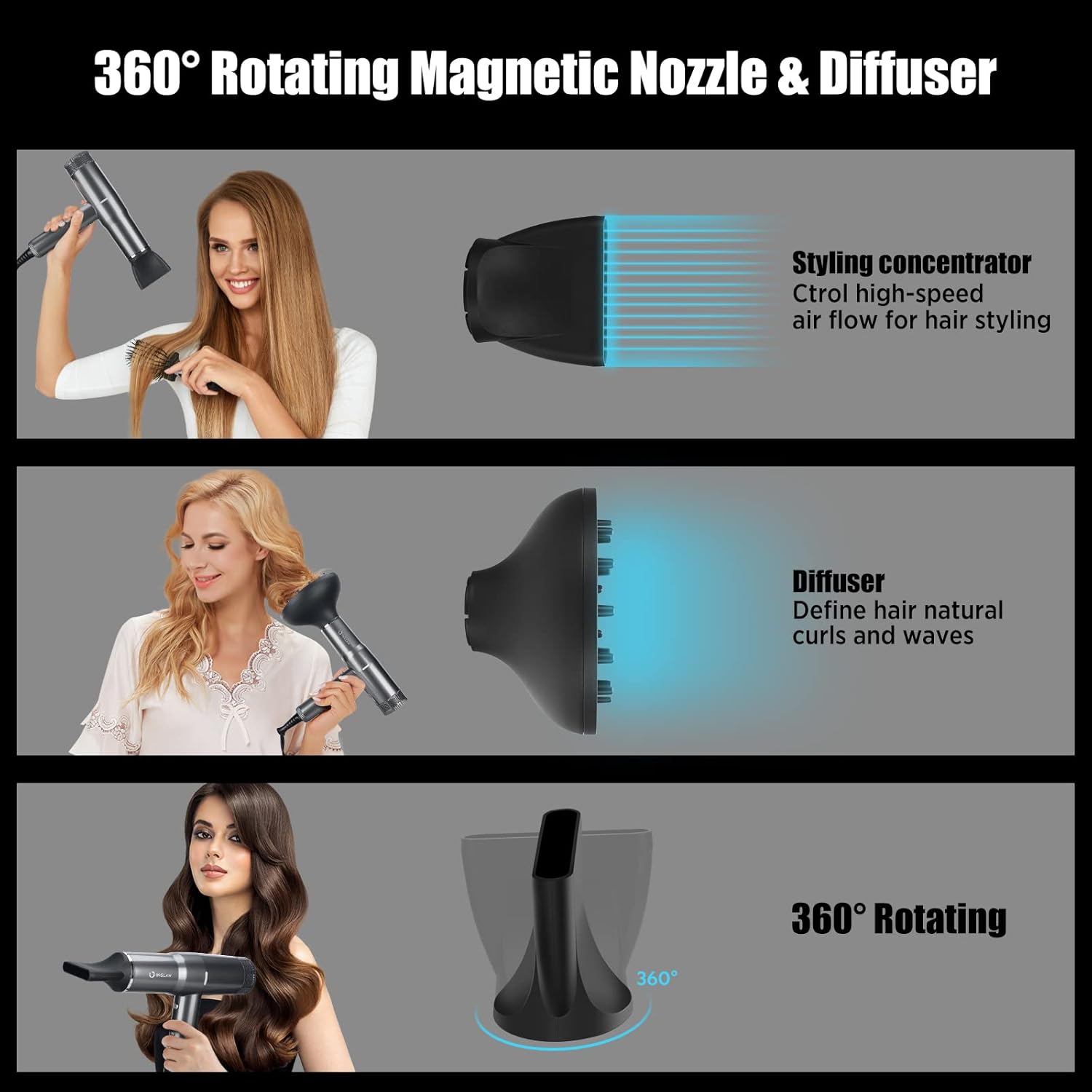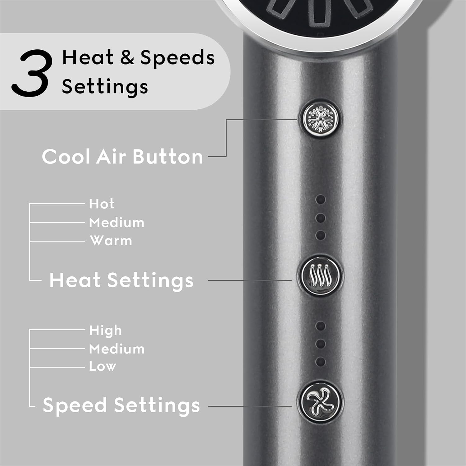 - 【3 Heat Settings & 3 Speed & Cold Settings→Meet Your Different Needs】3 grades for temperature and wind speed(Low-middle-high), and one cool shot button to meet your different needs of temperature and wind speed.