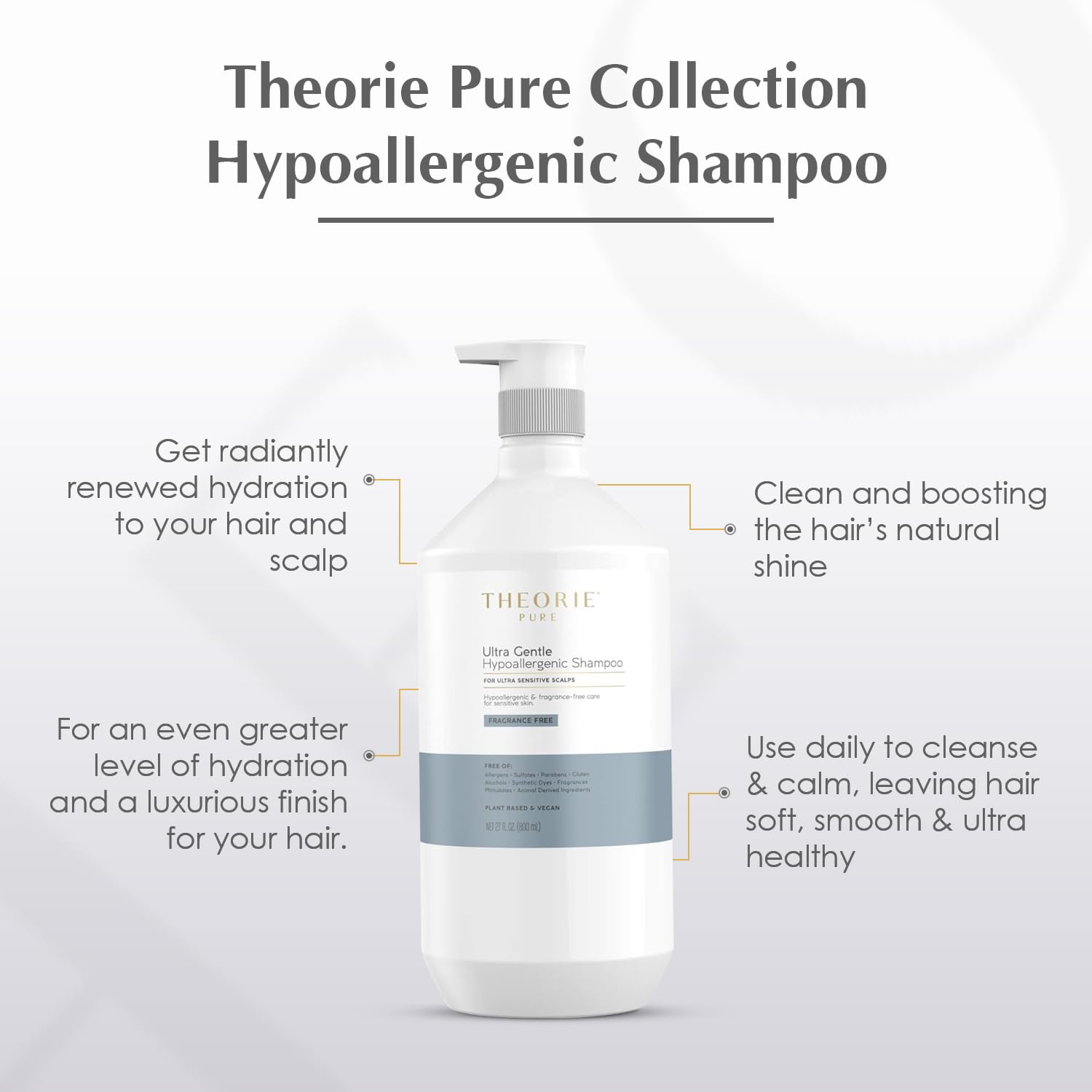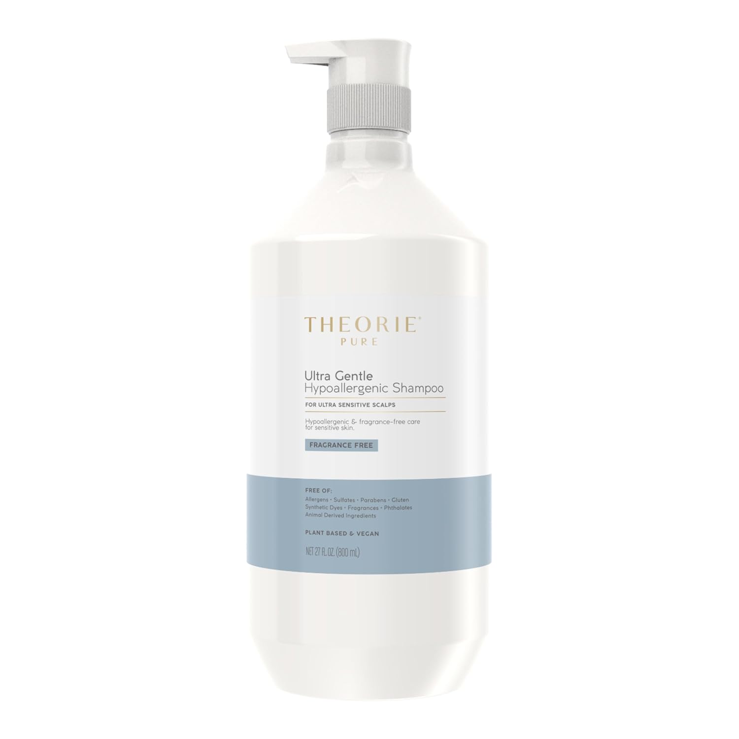 Theorie PURE Ultra Gentle Hypoallergenic Shampoo โ Plant-Based & Vegan โ Fragrance Free โ Designed for Delicate Scalps โ Pump Bottle โ 27 fl oz (1 Pack)