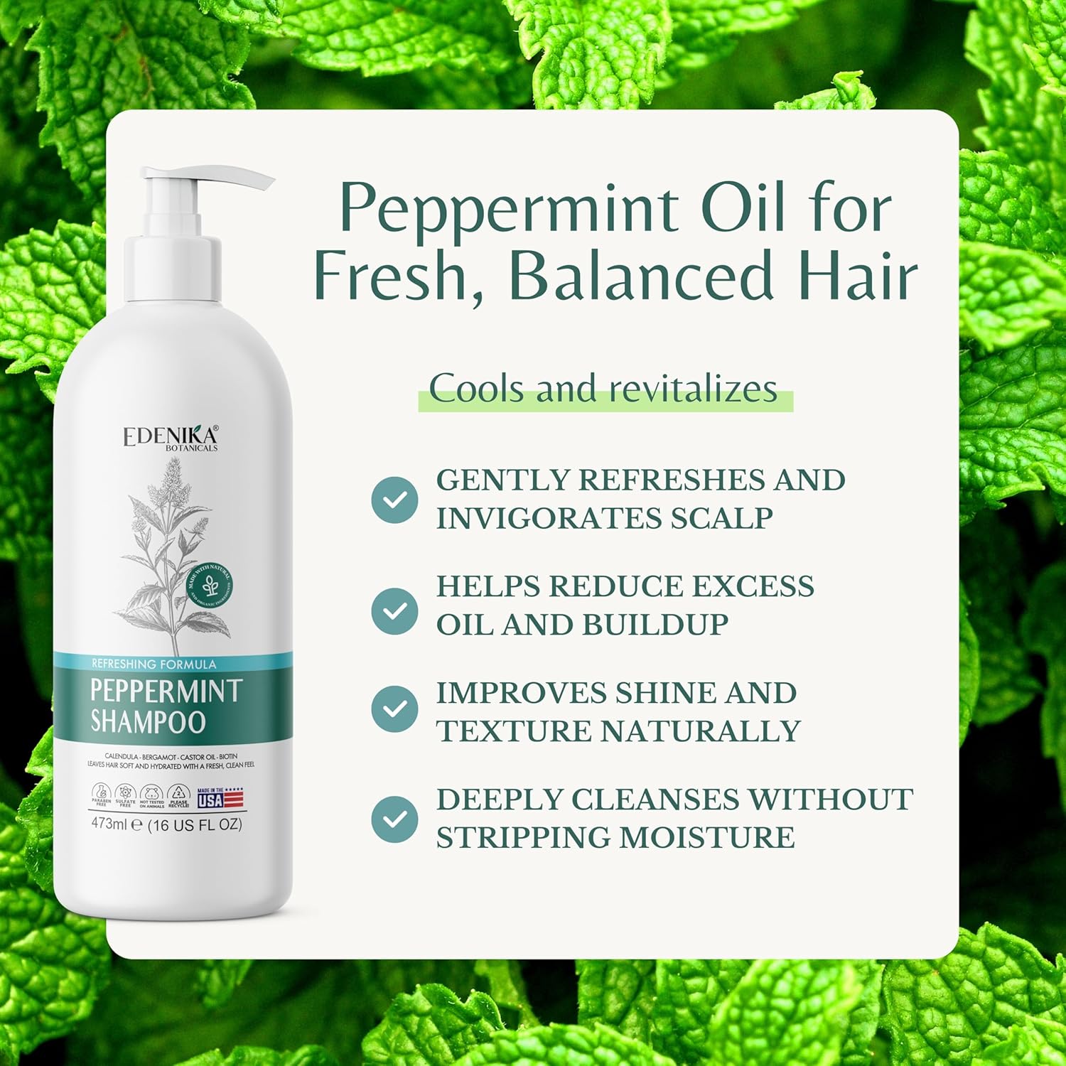 - Deeply Clarifies Scalp & Hair: This peppermint-infused shampoo removes product residue, excess oil, and hard water buildup. It deeply cleanses the scalp and hair without stripping moisture, leaving your strands refreshed, weightless, and ready to absorb nutrients.