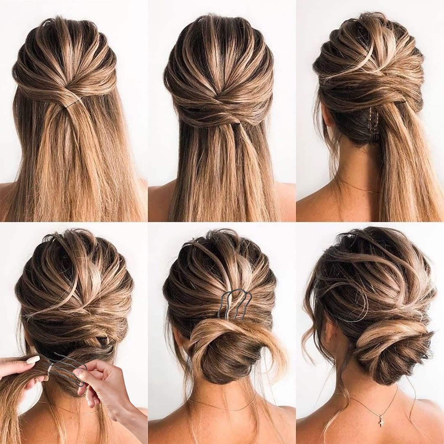 - [Reliable Material]Our updo hair accessories are made of high-quality metal with a black coating on the surface, which will be comfortable to touch and not easy to fade.The u-shaped design and wave-shaped comb teeth can help you design your hairstyle, it is firm and non-slip when used