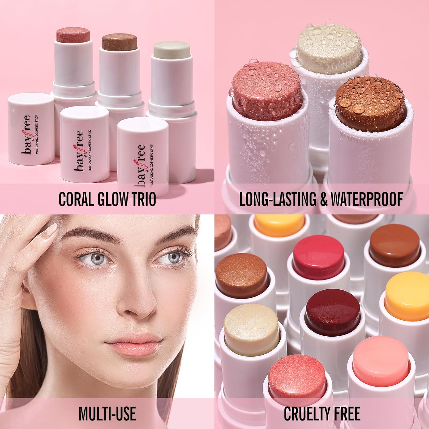 KIMUSE Multi Stick Trio Face Makeup, Cream Blush Stick for Cheeks & Lips, Contour Stick & Highlighter Makeup Sticks for All Skin