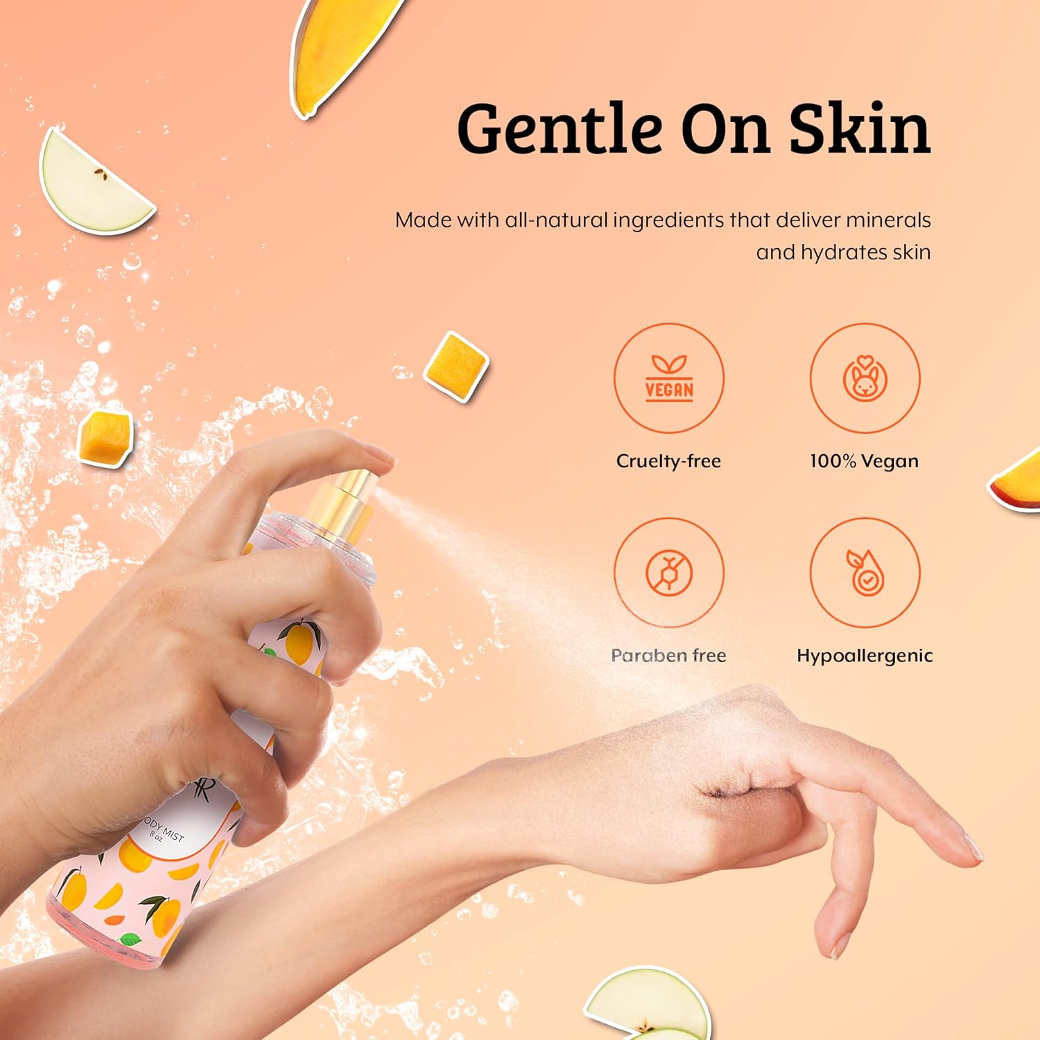 - Elevate Your Scent Game: Our Mango Pear Body Spray for Women is the ultimate choice for enhancing your daily fragrance experience. This Perfume Fragrance Body Mist is designed to elevate your scent game, making you feel and smell exquisite all day.