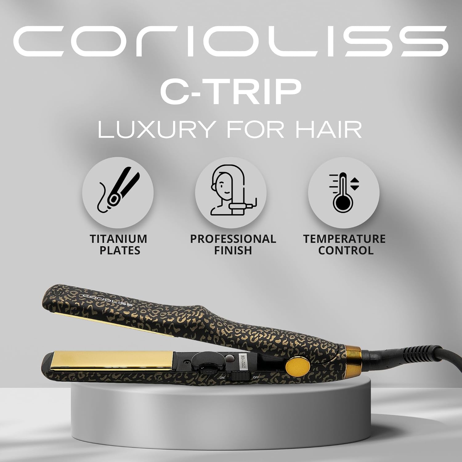 CORIOLISS C Trip Mini | Hair Straighteners for Women | Titanium| Flat Iron | Professional with Temperature Control (Leopard Gold Soft Touch)