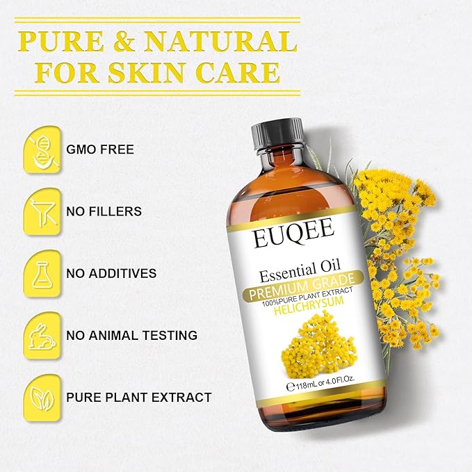 Helichrysum Essential Oil 4 oz/118 ml Large Bottle Premium Helichrysum Oil with Glass Dropper - Great for Diffusers, Humidifier, Candle & Soap Making