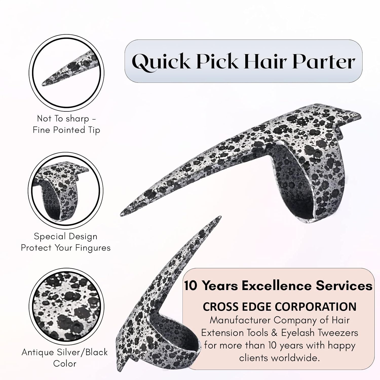 - ๐ Precision Hair Parting Tool - Cross Edge Corporation Professional Stainless-steel Tool for Precisely Parting Sections of Hair for Making Braids, Highlights, Weaves, Hair Color, And Installing Hair Extensions. You Know That Feeling When Your Hands Are Too Full? This Unique Tool Takes the Place of a Standard Tail Styling Comb and Makes Your Hair Extension Installations Much More Efficient!