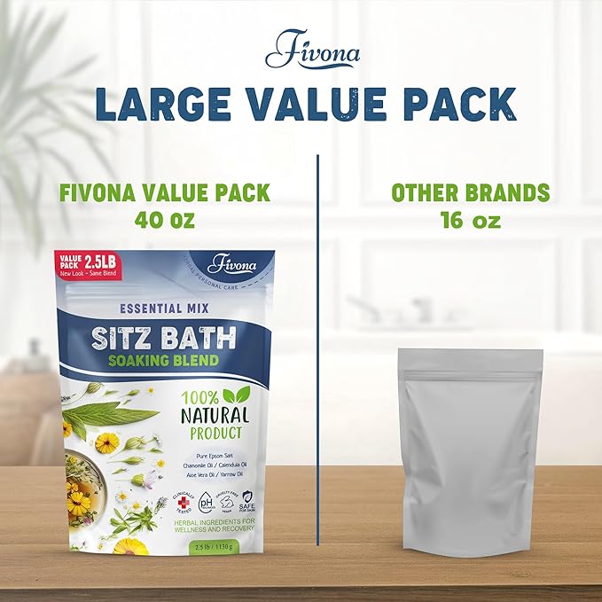 - LARGE 40 OUNCES VALUE PACK - Unbeatable value while maintaining the highest possible quality of the ingredients. Works best with Fivona sitz bath seats; enjoy every moment and heal fast!