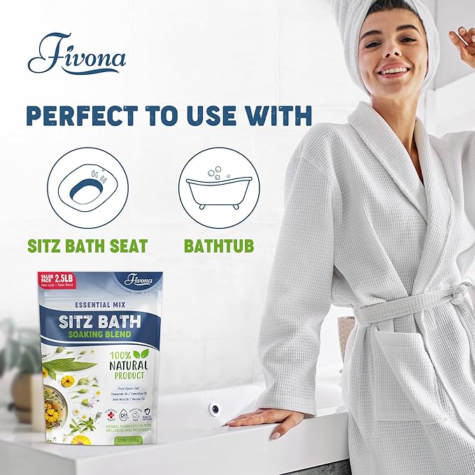 - POSTPARTUM CARE SITZ BATH SALT - Soothing postpartum essentials solution for after birth mom to heal and recover fast. Fivona's sitz bath salt with Yarrow, Chamomile, Calendula and Aloe Vera pure essential oils assists in reducing swelling, itchiness, and irritation in sensitive areas