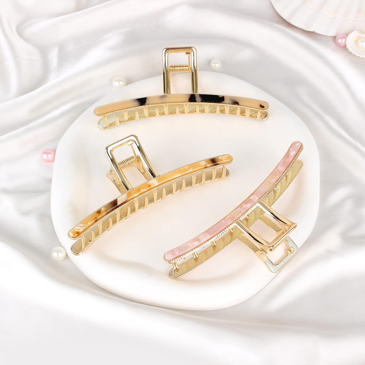- ★Acetate metal clips set: There are 3 different colors of acetate claw clips in the package, including peacock pearly pink, leopard orange, tortoiseshell brown, to meet your different needs and daily replacement.