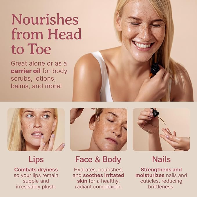 - Special Feature : Free from: parabens, hexanes, additives, preservatives., Minimizes Wrinkles. Leaves Skin Smooth and Soft. Prevents Stretch Marks. Promotes Skin Elasticity., 100% Pure. Organic. Unrefined. Cold-pressed. Cruelty-free. Natural., 100% Money Back Guarantee. Bottled in the USA. Veteran-owned business., Registered Organic with the State of California Dept of Public Health Food & Drug Branch. Reg# 112841. Free from: parabens, hexanes, additives, preservatives., Minimizes Wrinkles. Leaves Skin Smooth and Soft. Prevents Stretch Marks. Promotes Skin Elasticity., 100% Pure. Organic. Unrefined. Cold-pressed. Cruelty-free. Nat… See more