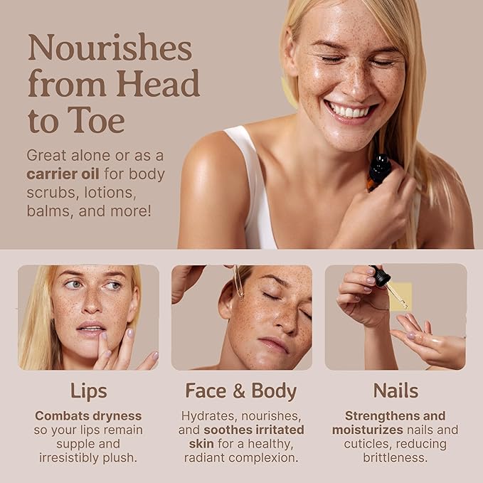- Special Feature : Free from: parabens, hexanes, additives, preservatives., Minimizes Wrinkles. Leaves Skin Smooth and Soft. Prevents Stretch Marks. Promotes Skin Elasticity., 100% Pure. Organic. Unrefined. Cold-pressed. Cruelty-free. Natural., 100% Money Back Guarantee. Bottled in the USA. Veteran-owned business., Registered Organic with the State of California Dept of Public Health Food & Drug Branch. Reg# 112841. Free from: parabens, hexanes, additives, preservatives., Minimizes Wrinkles. Leaves Skin Smooth and Soft. Prevents Stretch Marks. Promotes Skin Elasticity., 100% Pure. Organic. Unrefined. Cold-pressed. Cruelty-free. Nat… See more