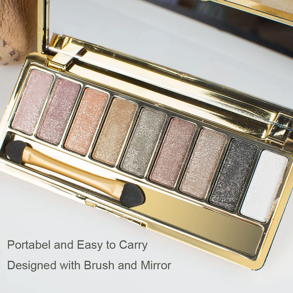 9 Colors Eyeshadow Palette with Brush and Mirror Shimmer Eye Shadow Palette Women Diamond Bright Shining Colorful Makeup Eye Shadow Flash Glitter Make Up Set