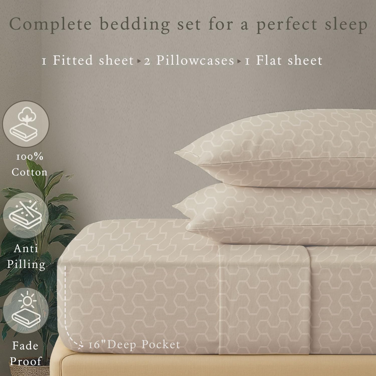 Threadmill 100% Cotton Sheets for King Size Bed | Damask Sateen All-Season 500Thread Count 4 Pc King Bed Sheets Set | Soft, Breathable Hotel Quality | Snug Fit Elastic Deep Pocket King Sheets | Beige