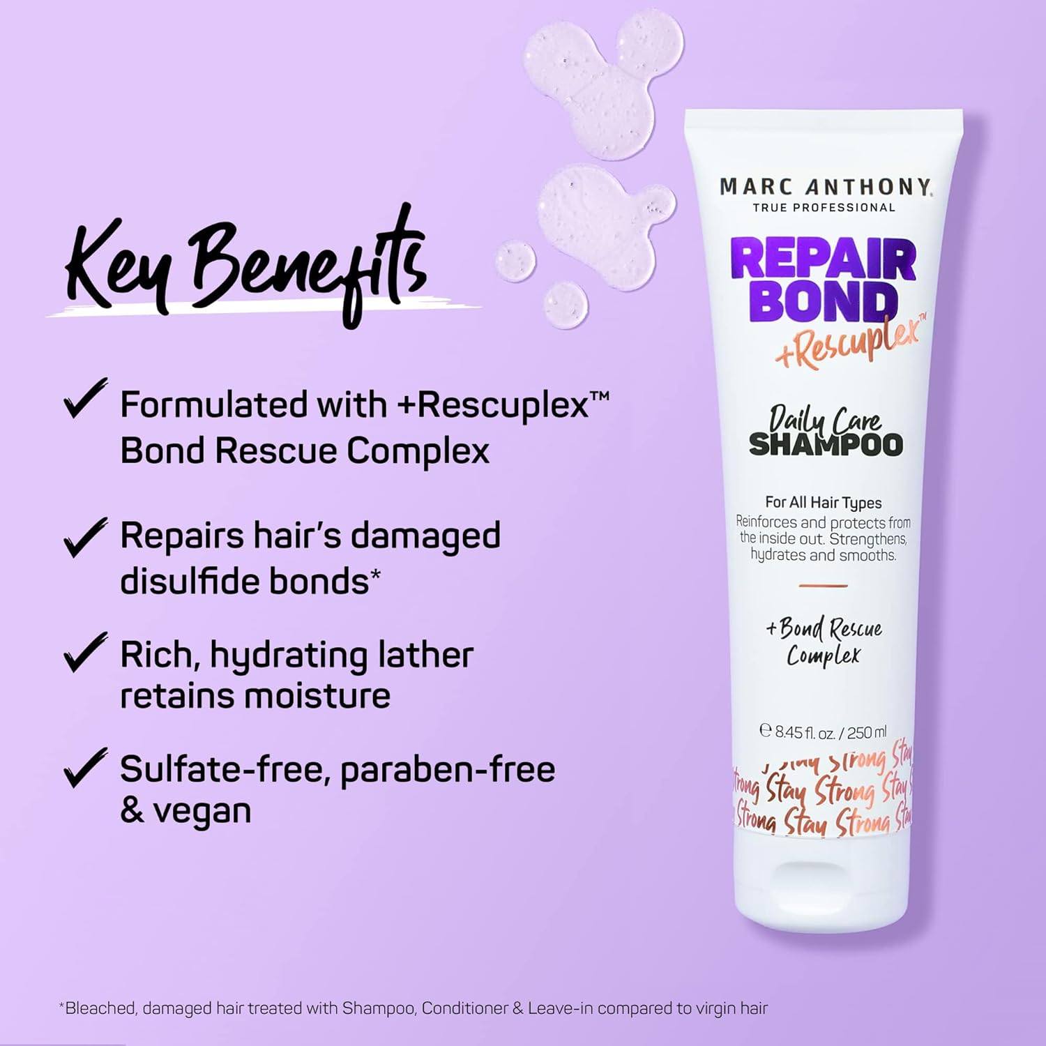 Marc Anthony Repairing Shampoo, Repair Bond +Rescuplex - Repairs, Strengthens & Maintains Bonds within Hair - Eliminates Frizz, Flyaways & Reduce Breakage - Dry & Damaged, Professional Treatment