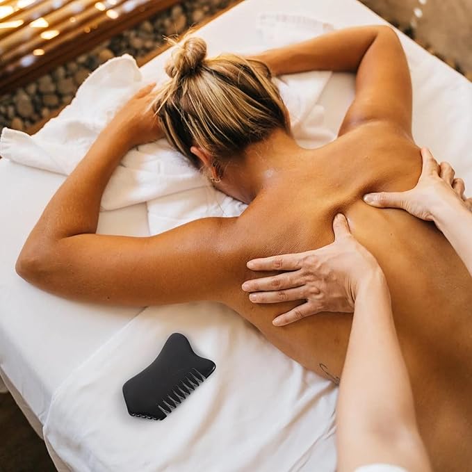 Facial Reflexology Tools Neck Massagers Jade Stone Massage Comb 1Pc - Guasha Scalp Comb, Handheld Scraping Massage Tool for Head Caring, Relax (Black) Facial Reflexology Tools Neck Massagers