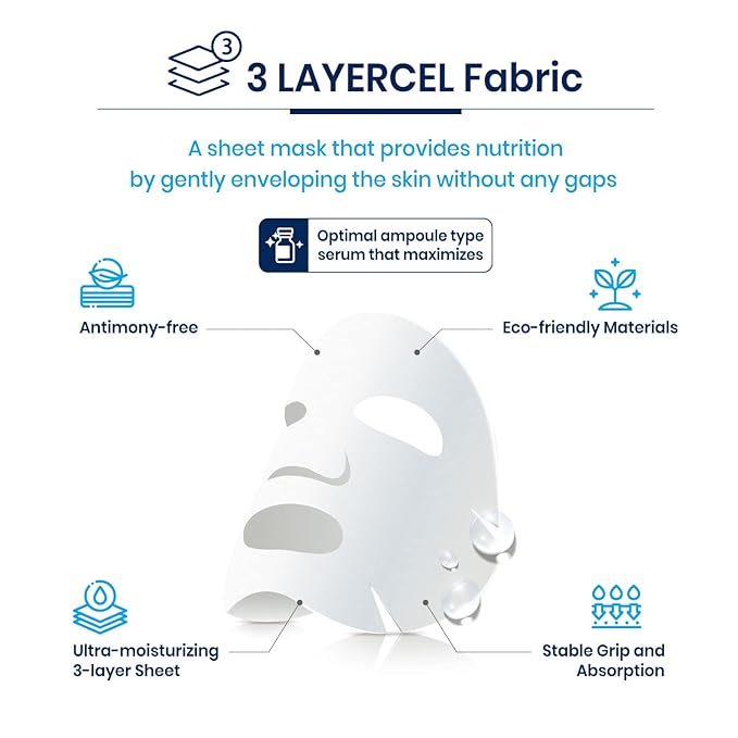 - 3 LAYERCEL FABRIC – The mask fabric is stiff by design. This helps the nutrients in the sheet mask to be absorbed more efficiently by your face skin