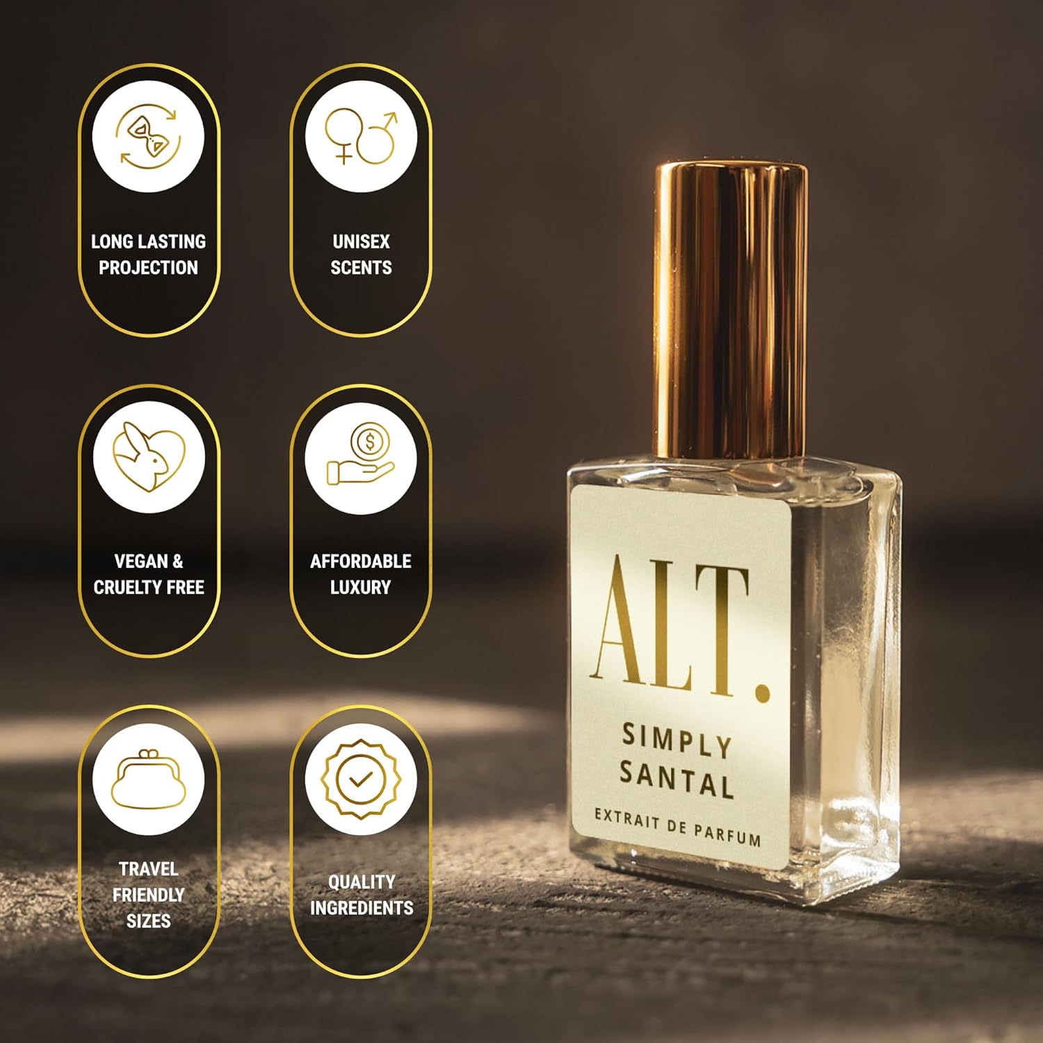 - Signature Scent: Simply Santal by ALT. is your go-to fragrance, a blend of luxury perfume and affordability that leaves a lasting impression. Discover the soft and smoky scent of perfume for women and men with ALT Simply Santal.