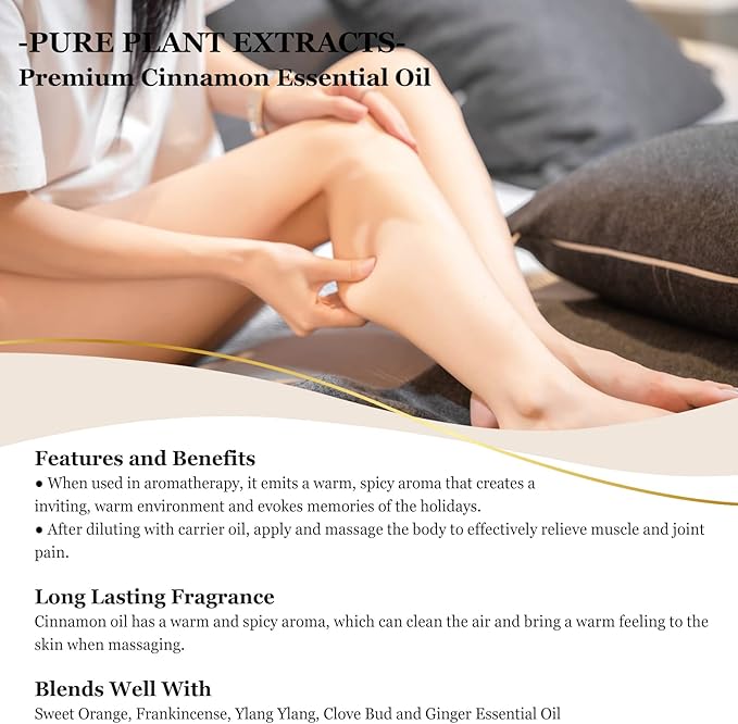 - QUANLITY ASSURANCE - Cinnamon essential oil is obtained from the fresh branches, leaves, stems and bark of cinnamon tree, extracted by steam distillation, and refined by fumigation. It has the unique spicy, warm and sweet aroma of Chinese cinnamon.