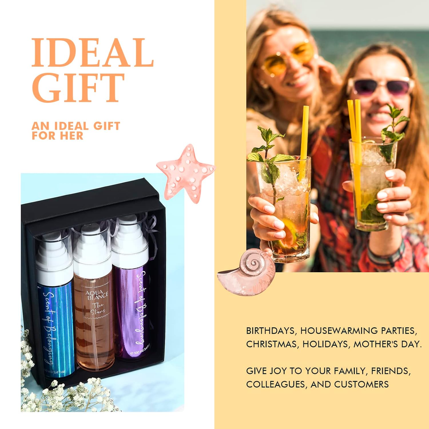 Body Spray for Women, Fragrance Mist Gift Set, Pack of 3, Each 3.4 Fl Oz, Total 10.2 Fl Oz, Cherry Blossoms, Stars, Night