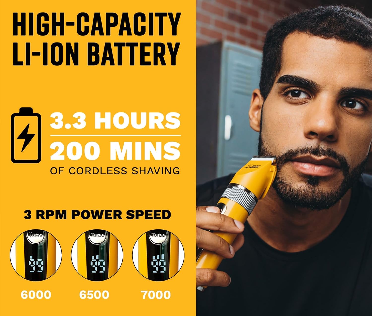 - CUSTOM SPEED CONTROL – Choose from 3 RPM levels (6000, 6500, 7000) to personalize your grooming speed and precision