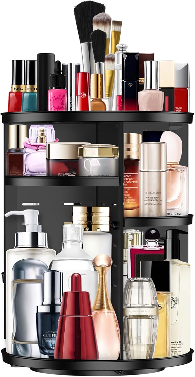 Makeup Organizer 360 Rotating Cosmetic Organizer DIY Adjustable Makeup Carousel Spinning Holder Rack, Large Capacity Cosmetic Storage Box Makeup Brushes Organizer for Vanity Countertop (Black)