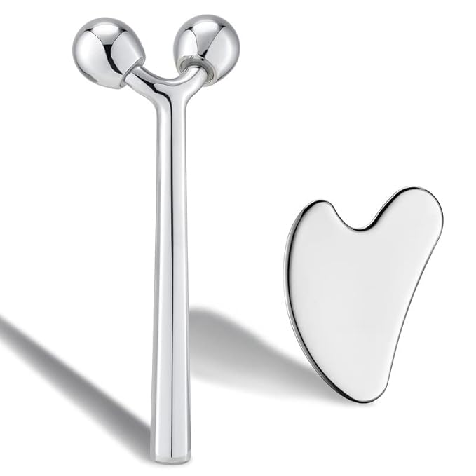Tekson Facial Roller Massager, 3D Metal face Massage GuaSha Tool for Eye Reduce Puffiness, Face Lift, Anti-Aging, Skin Tightening