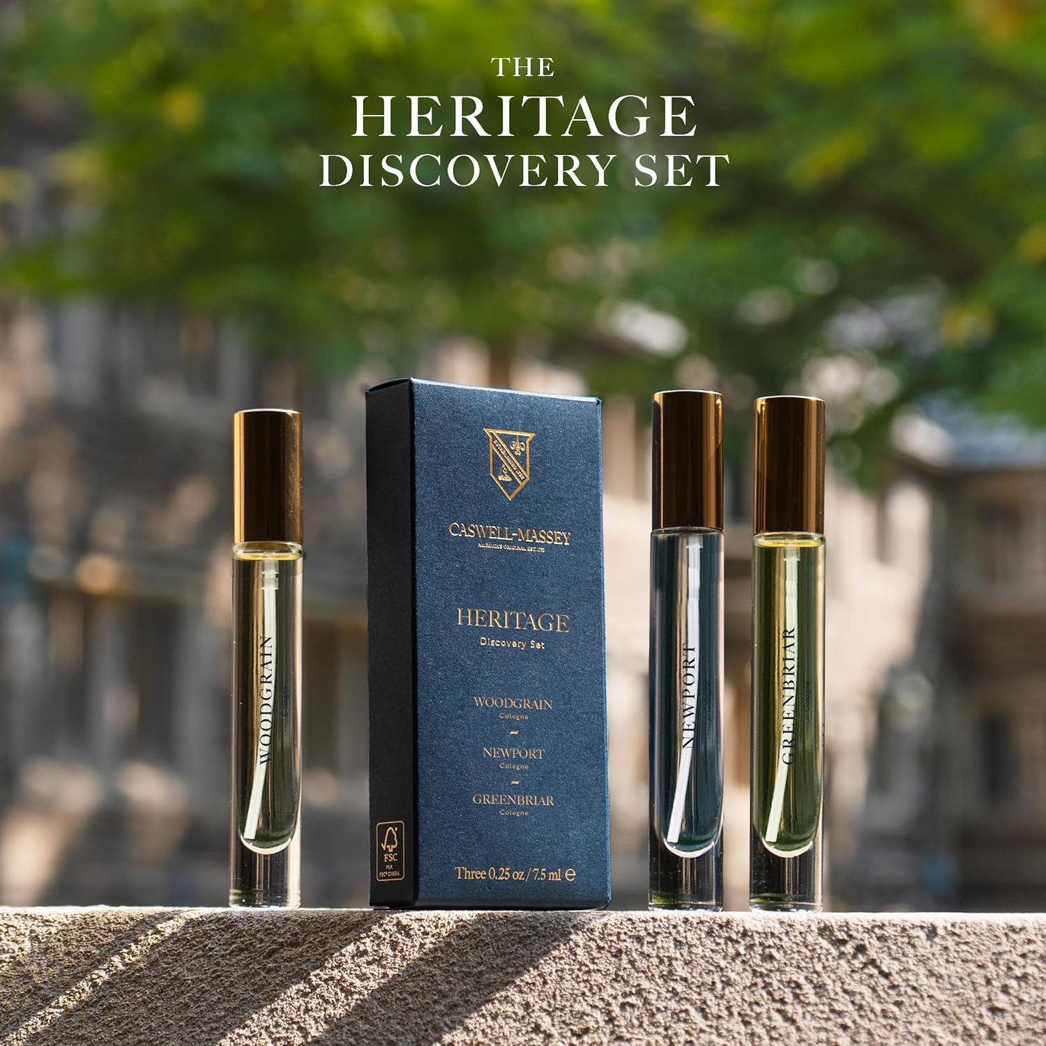 Caswell-Massey Cologne Discovery Set for Men, Travel-Size Cologne Gift Set with Woodgrain, Newport & Greenbriar Scents, Luxury Fragrance Trio, Made in USA, 0.25 Fl Oz Each