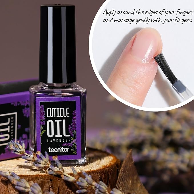- LAVENDER CUTICLE OIL:Teenitor Lavender Cuticle Oil has a pleasant, balancing, sweet scent that absorbs easily, making it great for conditioning and moisturizing your cuticles. Helps reduce dry and brittle nails, leaving them strong and hydrated