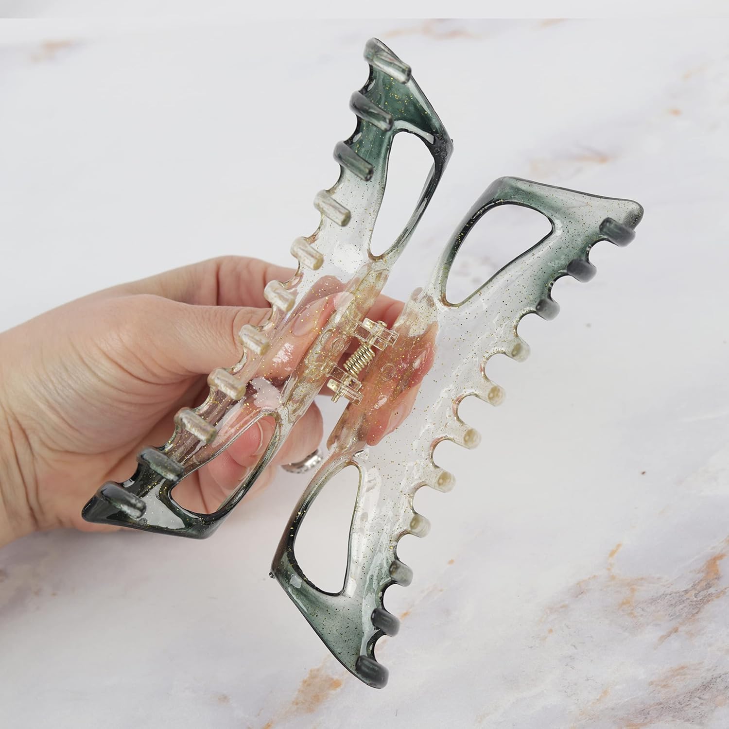 Women's Jumbo Jaw Clip Extra Large Marbelized Hair Claw (Glitter Grey)