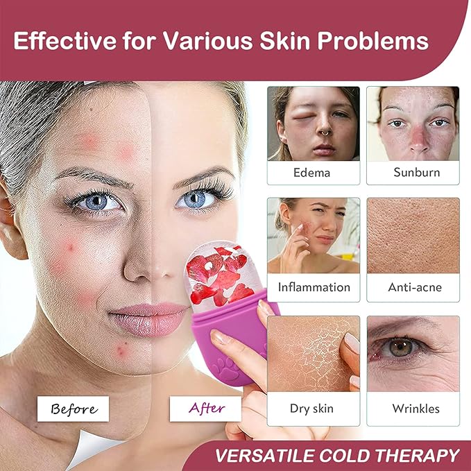 - ❄【REUSABLE FDA GRADE SILICONE】The ice roller for face is made of high quality thick silicone material, it is cute, simple and convenient to use, our handheld design allows the ice face roller head to slide easily on your skin. In addition, silicone skin care tools are food-grade and BPA-free, which makes them suitable for all genders and ages