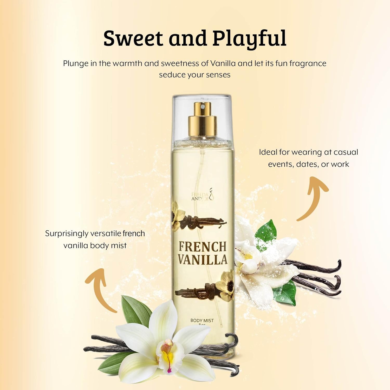 - Experience Timeless Elegance with Freida Joe French Vanilla Fine Fragrance Body Mist: The perfect choice for special occasions, including birthdays, Mother's Day, anniversaries, weddings, and Christmas. An ideal surprise for teachers and a thoughtful gift for women of all ages, wives, moms, and girlfriends. This universally cherished and unisex fragrance, with its sweet and inviting aroma, transcends gender boundaries. A perfect stocking stuffer or secret Santa gift, suitable for all occasions.