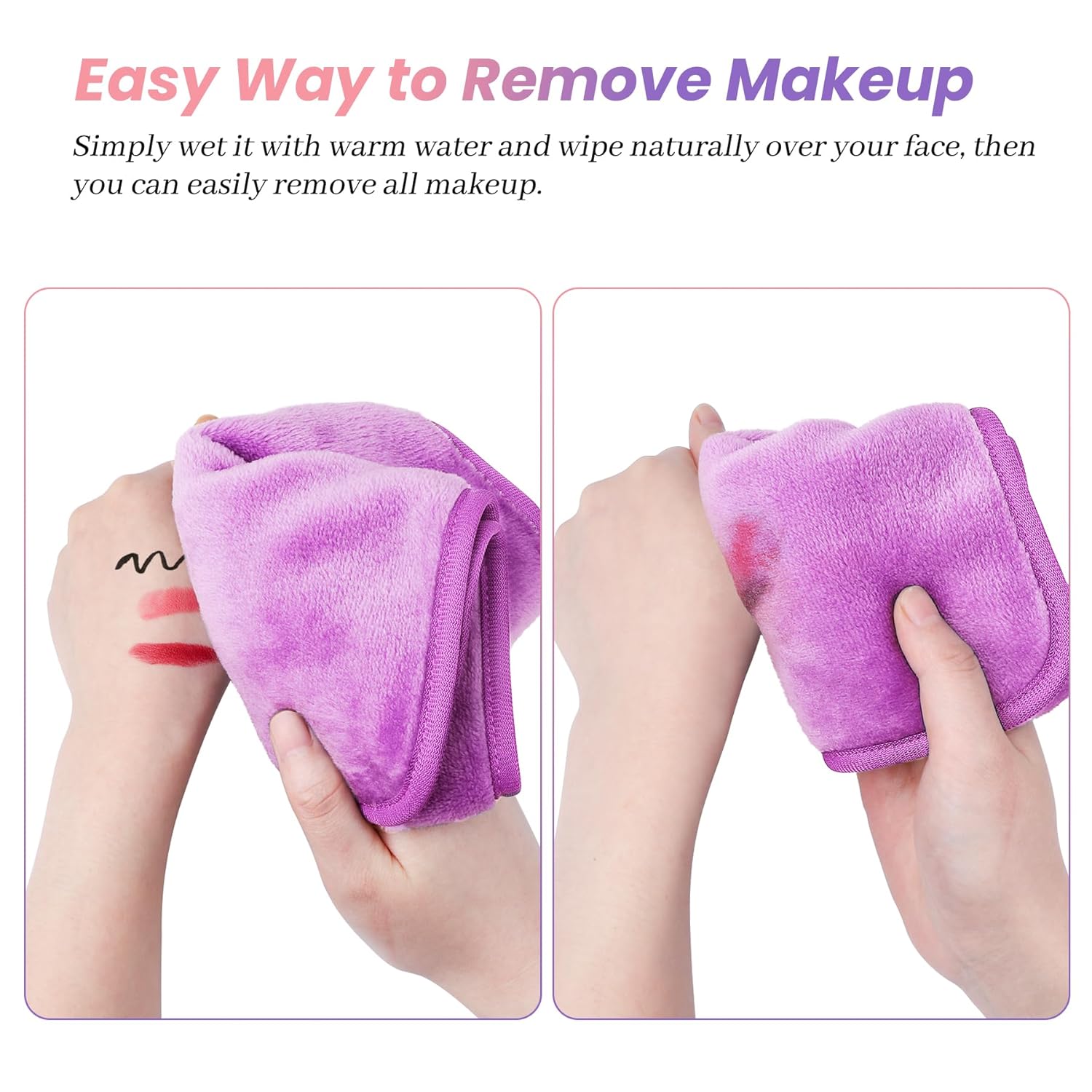 - TAKE IT EVERYWHERE: With our lightweight makeup towels, you don't need to pack bags of disposable wipes or bottles of makeup remover on the road anymore. Take these microfiber face towels to keep in your handbag, purse, or travel bag everywhere you go