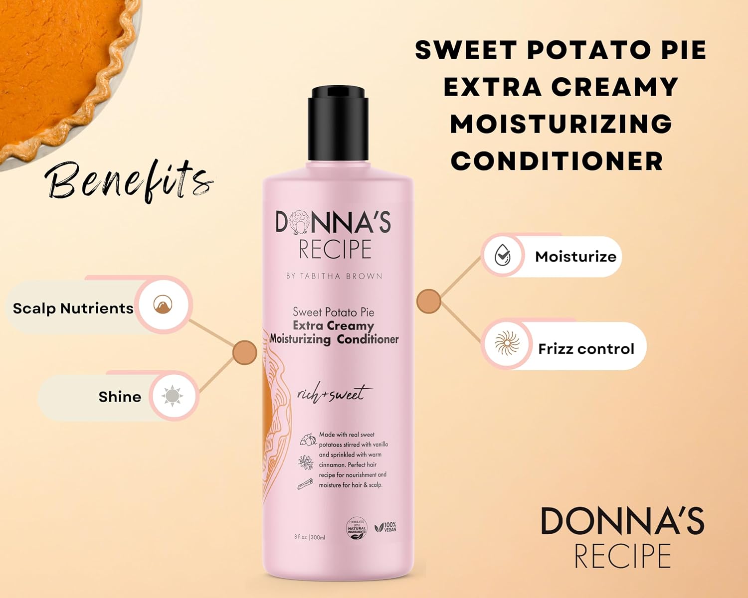 Donna's Recipe by Tabitha Brown | Sweet Potato Pie Extra Creamy Moisturizing Conditioner – Sulfate-Free, Beta-Carotene Hydration, Vegan, 8 oz