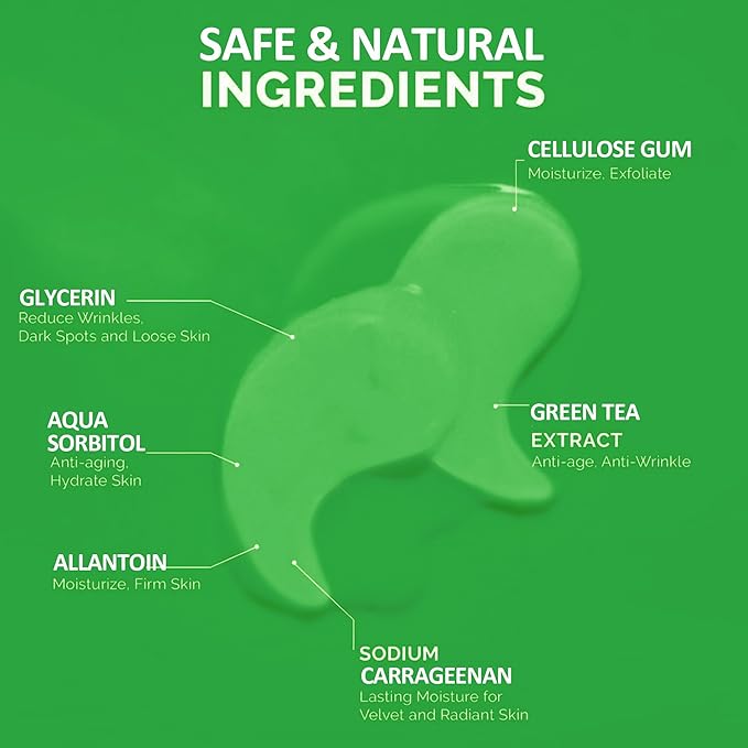 - GREEN TEA UNDER EYE MASK PATCHES - Gold means abundance and luxury, but it has also been found that its nanoparticles contain properties that increase blood circulation, increase cellular activity and restore damaged skin. With our Colloidal Gold Eye Masks, you can easily nourish the area from within. As a lush bastion for the thinnest and most delicate areas, these eye masks help soothe, rejuvenate and protect the skin around your gorgeous eyes.