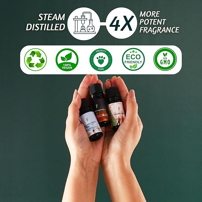 - [MULTIPURPOSE] - These christmas scented essential oils or christmas essential oils for soap making can also be used in lotions or fresh linen essential oils. These oils for diffusers that smell good or diffuser scents blends are versatile for soap base, perfumes, cleaning, art & craft projects, pine cones, incense sticks or cones, other unscented products and so much more!