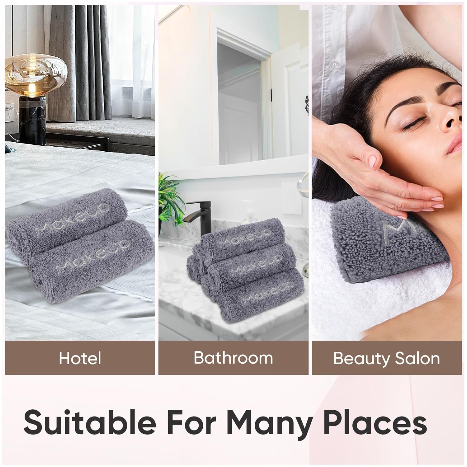 - Why Choose Our Black Makeup Towels: Makeup towels are machine washable. And black makeup removal towel could conceal any optical blemishes and effectively prevent makeup residue transfer,ensuring they look fresh and new and extend the life of the hotels' towels. Furthermore, these makeup towels contribute to elevating your hotel's image, adding a touch of sophistication