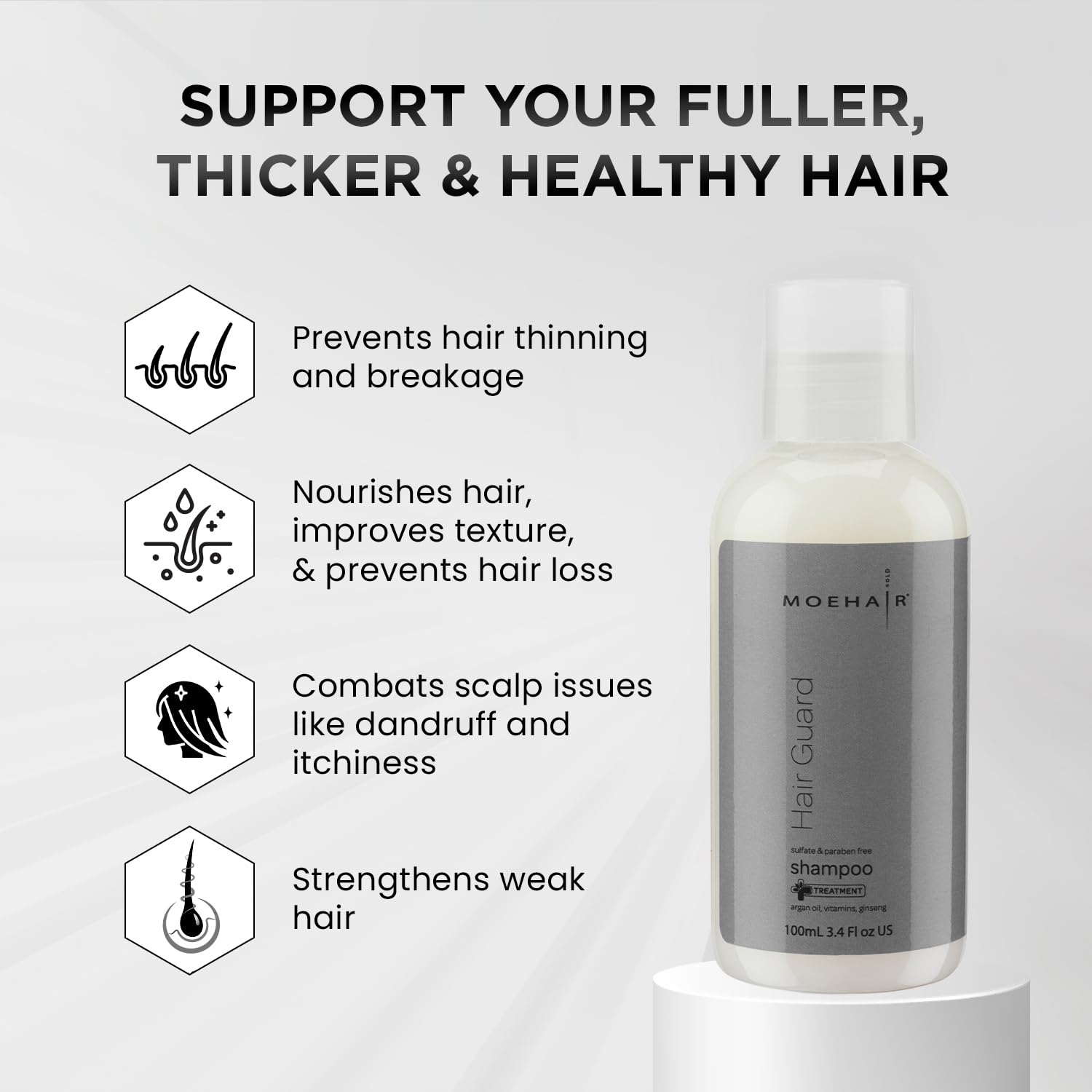 Moehair Hair Guard Shampoo Travel Size | Travel Friendly | Hair Thickening & Volumizing | Infused with Argan Oil, Ginseng & Vitamins | Paraben & Sulfate Free Shampoo (3.4 Fl. Oz)