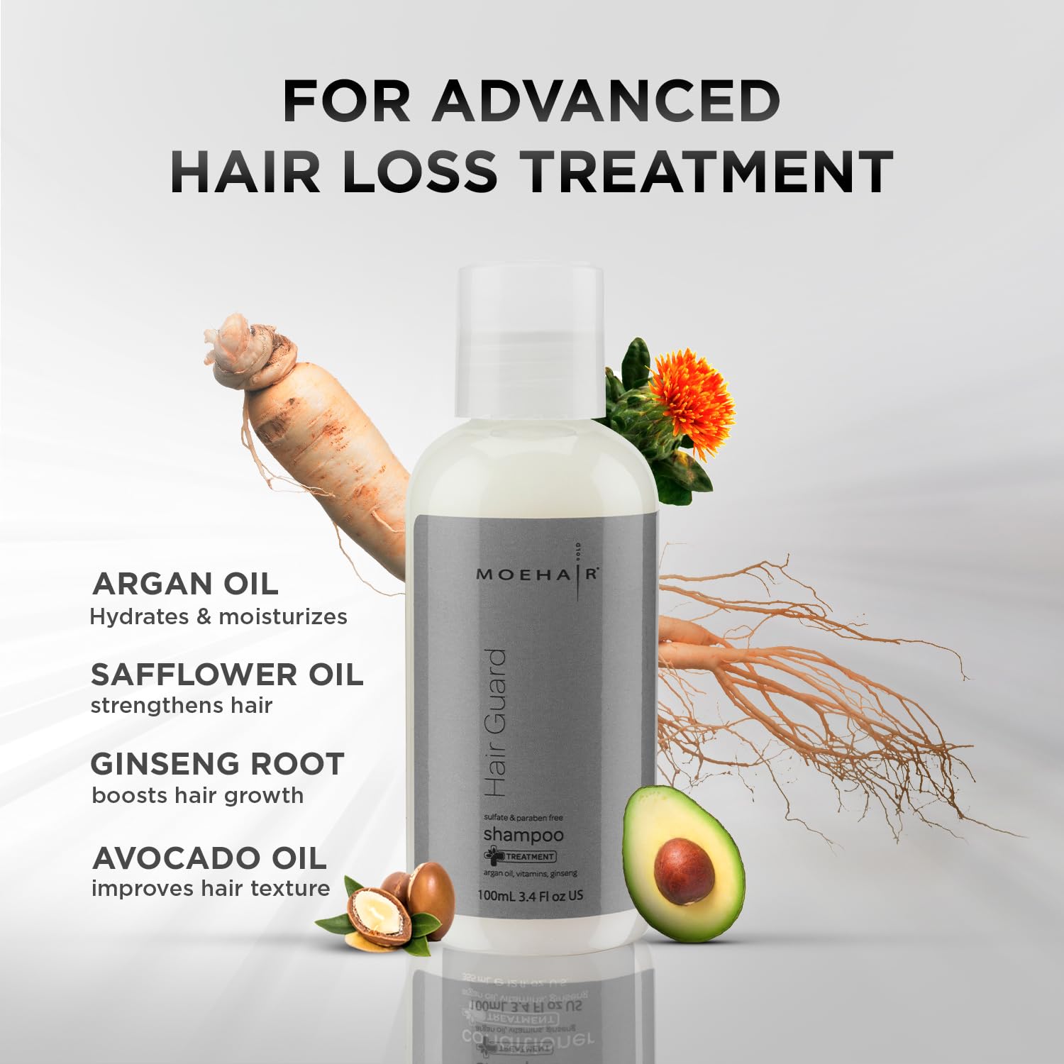 - ✔️ HOW TO USE HAIR GUARD SHAMPOO — The sulfate-free shampoo is your go-to choice if hair fall haunts you. Apply a generous amount of shampoo on your palm and wet hair. Lather it properly and cleanse it from scalp to end. Rinse thoroughly and follow up with Moehair Hair Guard Conditioner and Hair Guard Tonic. Say goodbye to hair loss, and flaunt your gorgeous hair. Get ready to embrace stunning vacation hair with the travel size shampoo