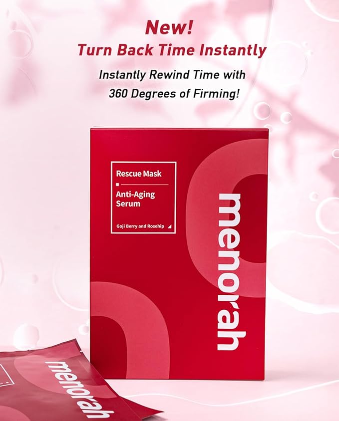 menorah skincare - Anti-Aging Serum Rescue Sheet Masks (4 Sheets) - with Goji Berry, Rosehip, Facial Mask, Skin Firmness and Elasticity