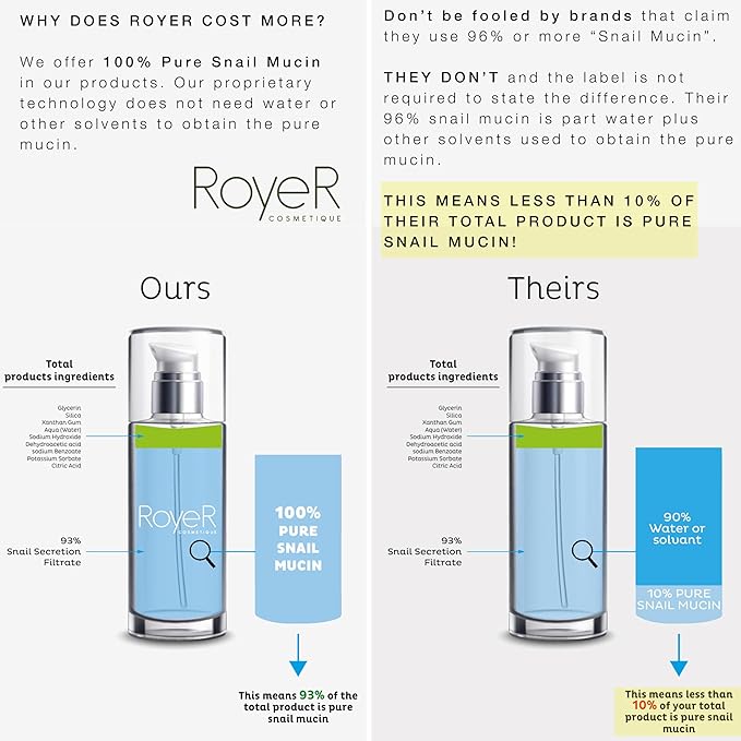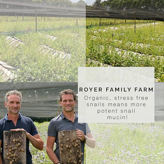 - CERTIFIED CRUELTY FREE; The Royer family invented an ethical system to naturally harvest the snail mucin without inflicting pain. Snails are tenderly tickled releasing pure, organic and unstressed snail mucin. Unlike other snail mucin brands, RoyeR snails roam free on a 26,000 square foot park on a farm near the Brittany Coast in France. This process results in a deeply effective and hydrating snail skincare products.