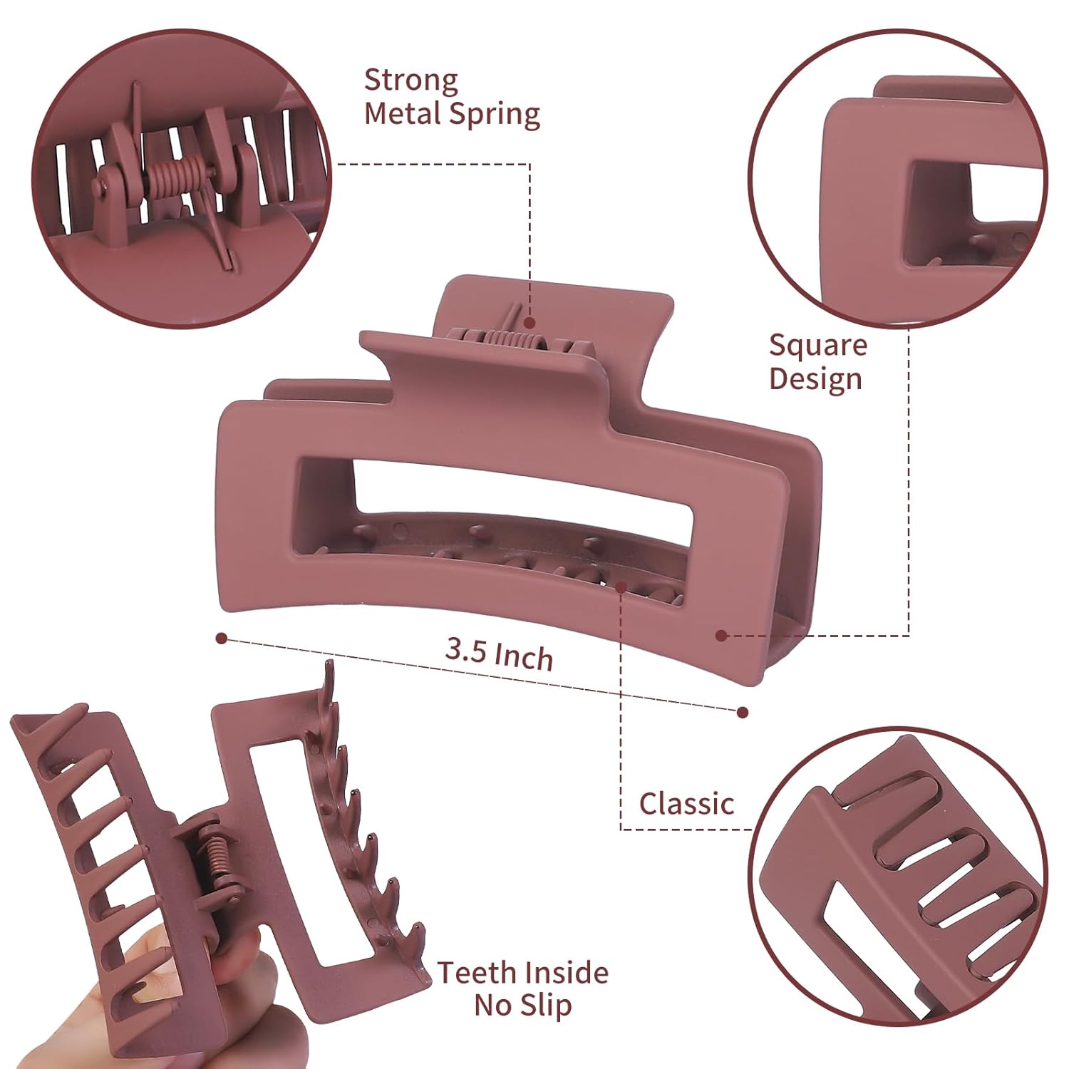 Hair Accessories - 12 Pcs 3.5 Inch Square Rectangle Jaw Clips for Women and Girls, Multicolor, Thick and Thin Hair