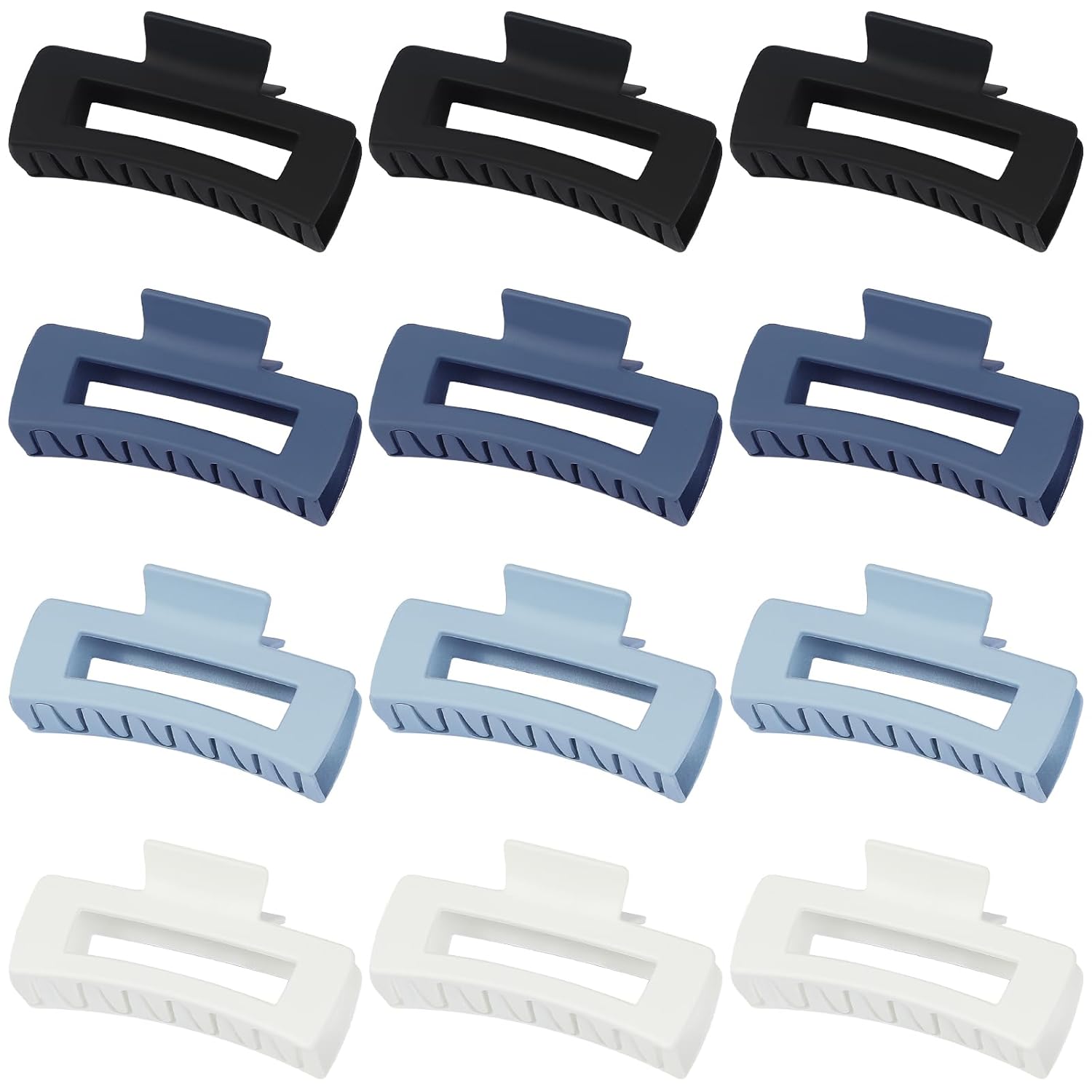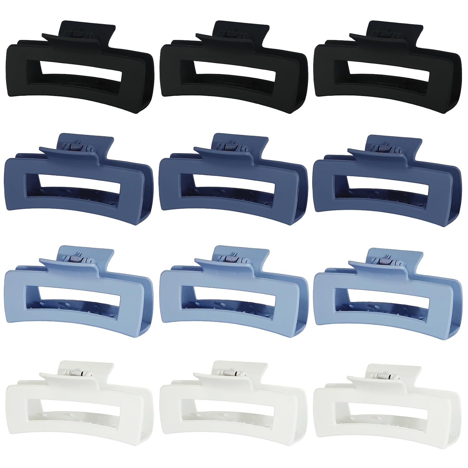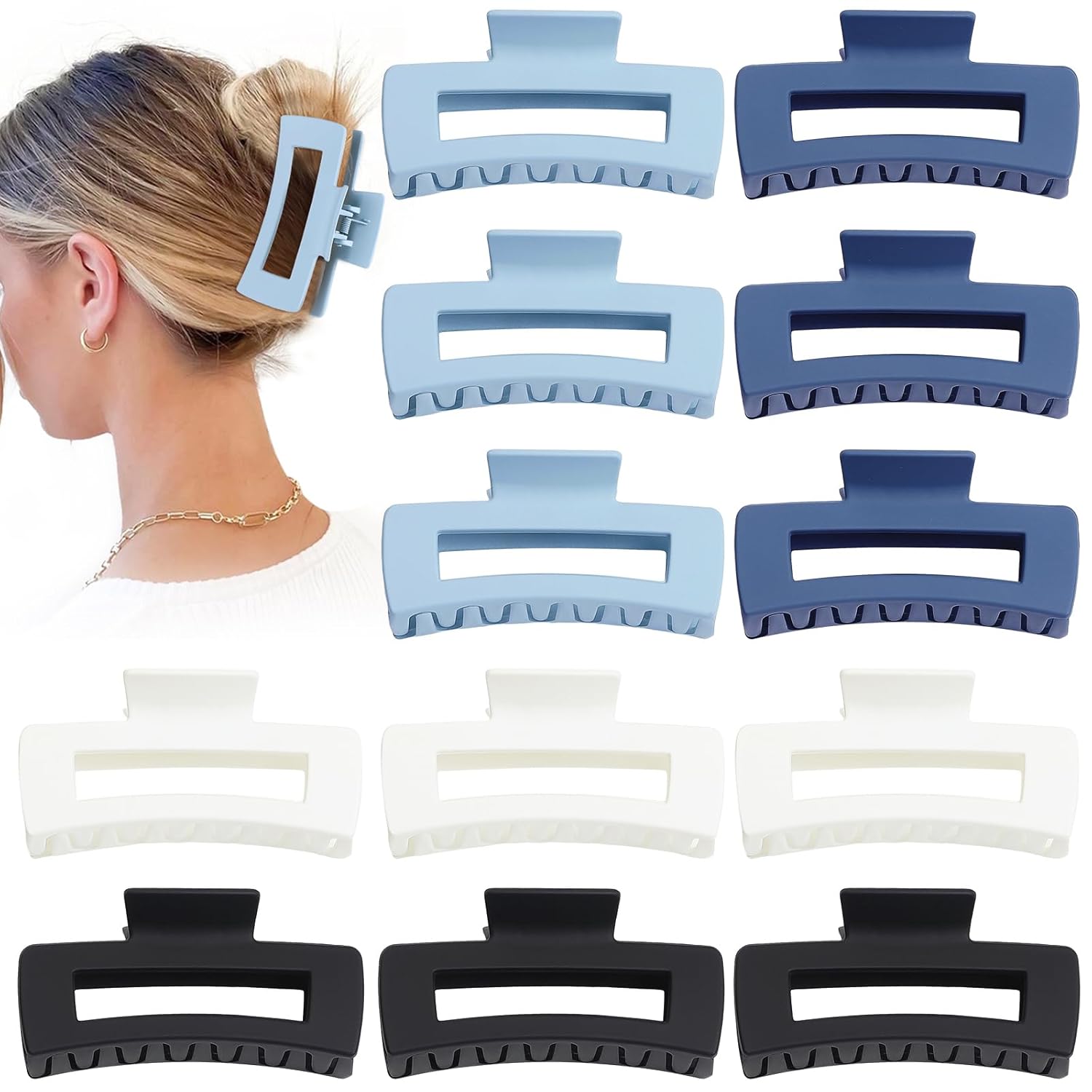 Hair Clip, 4.1 Inch Large Square Hair Claws Clips 12 Pcs for Thick Hair - Blue, for Women and Girls
