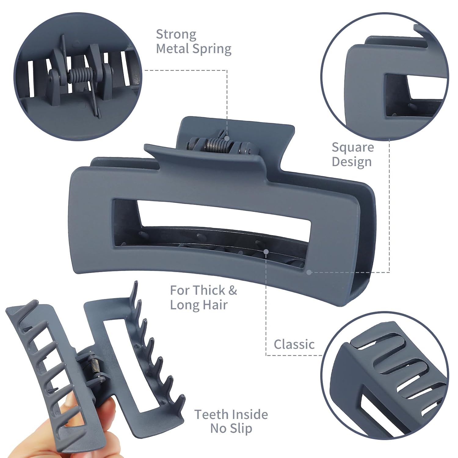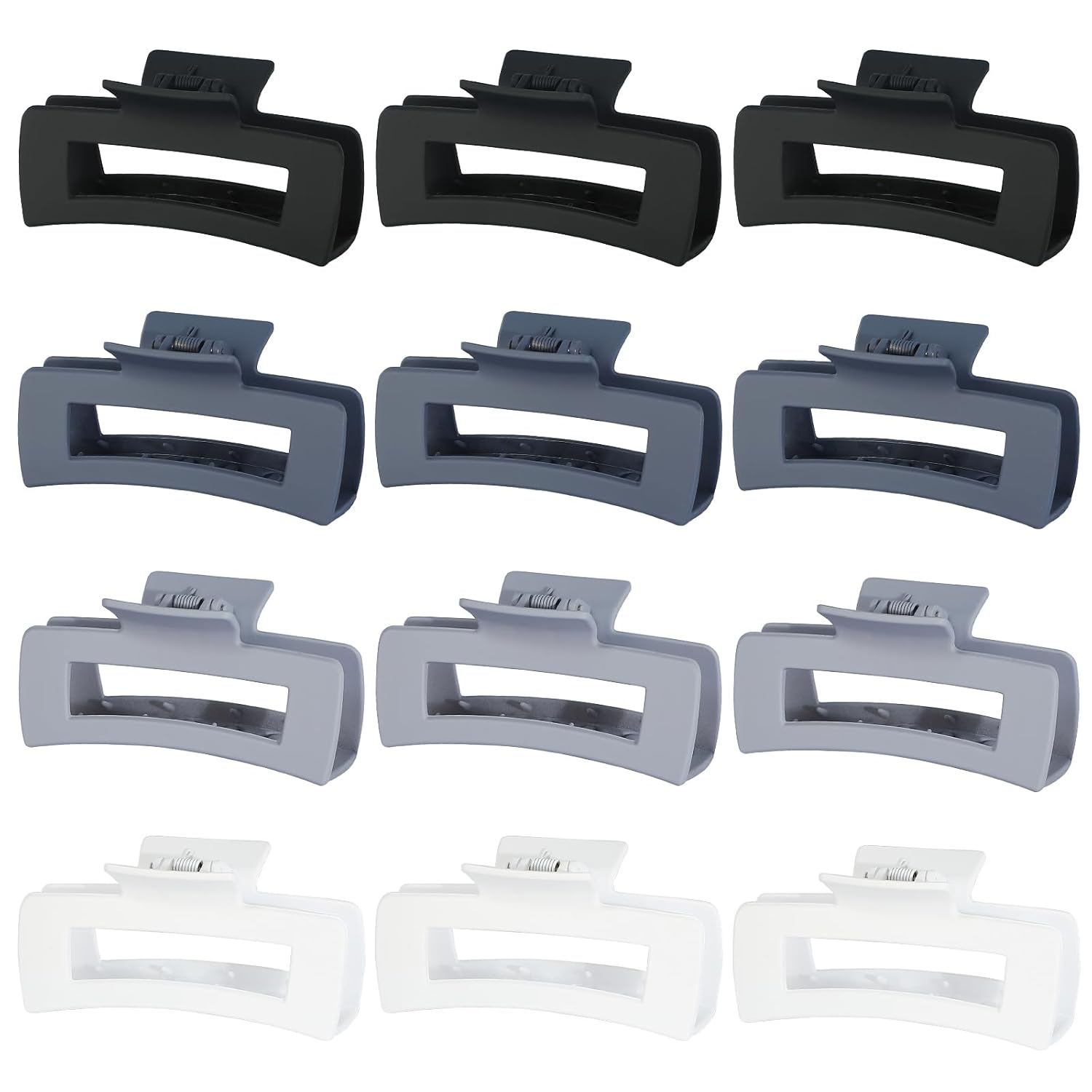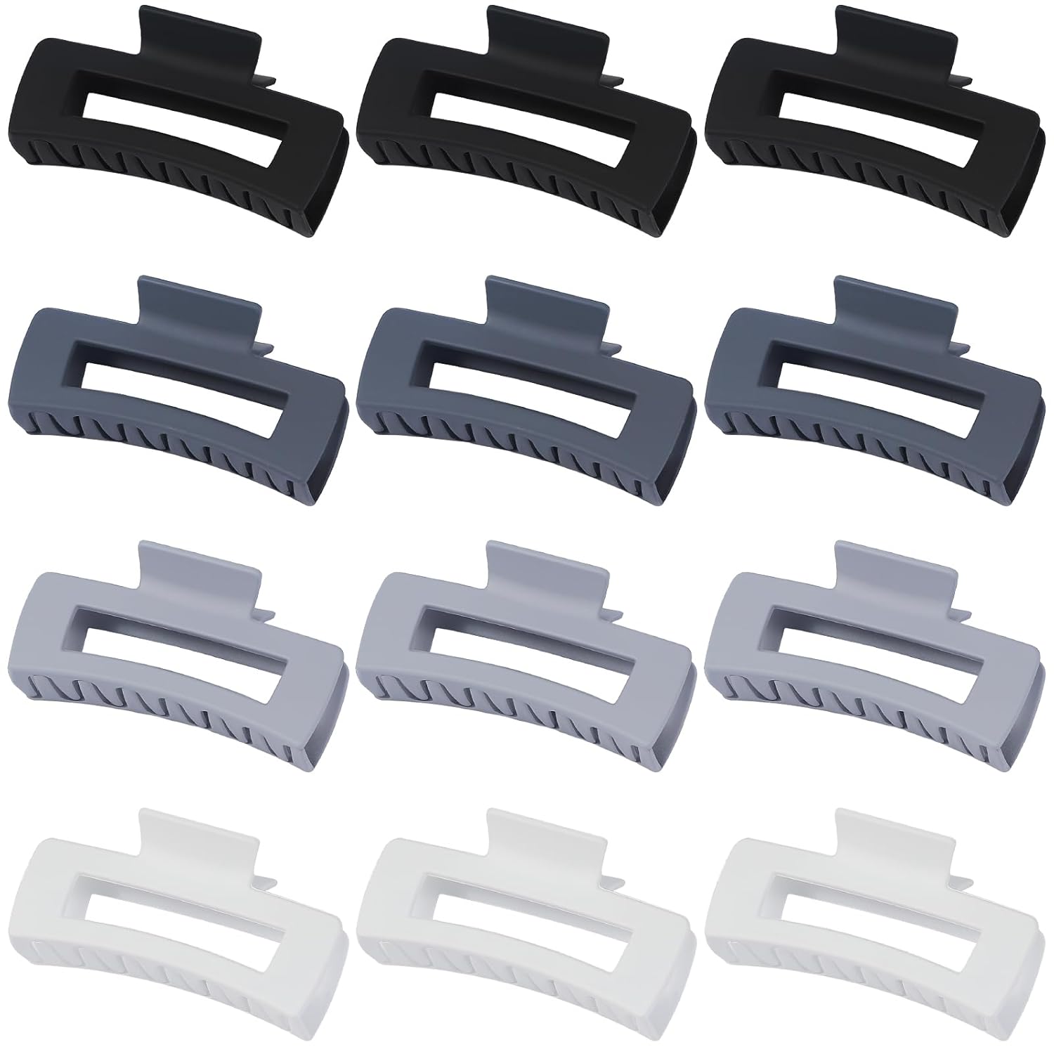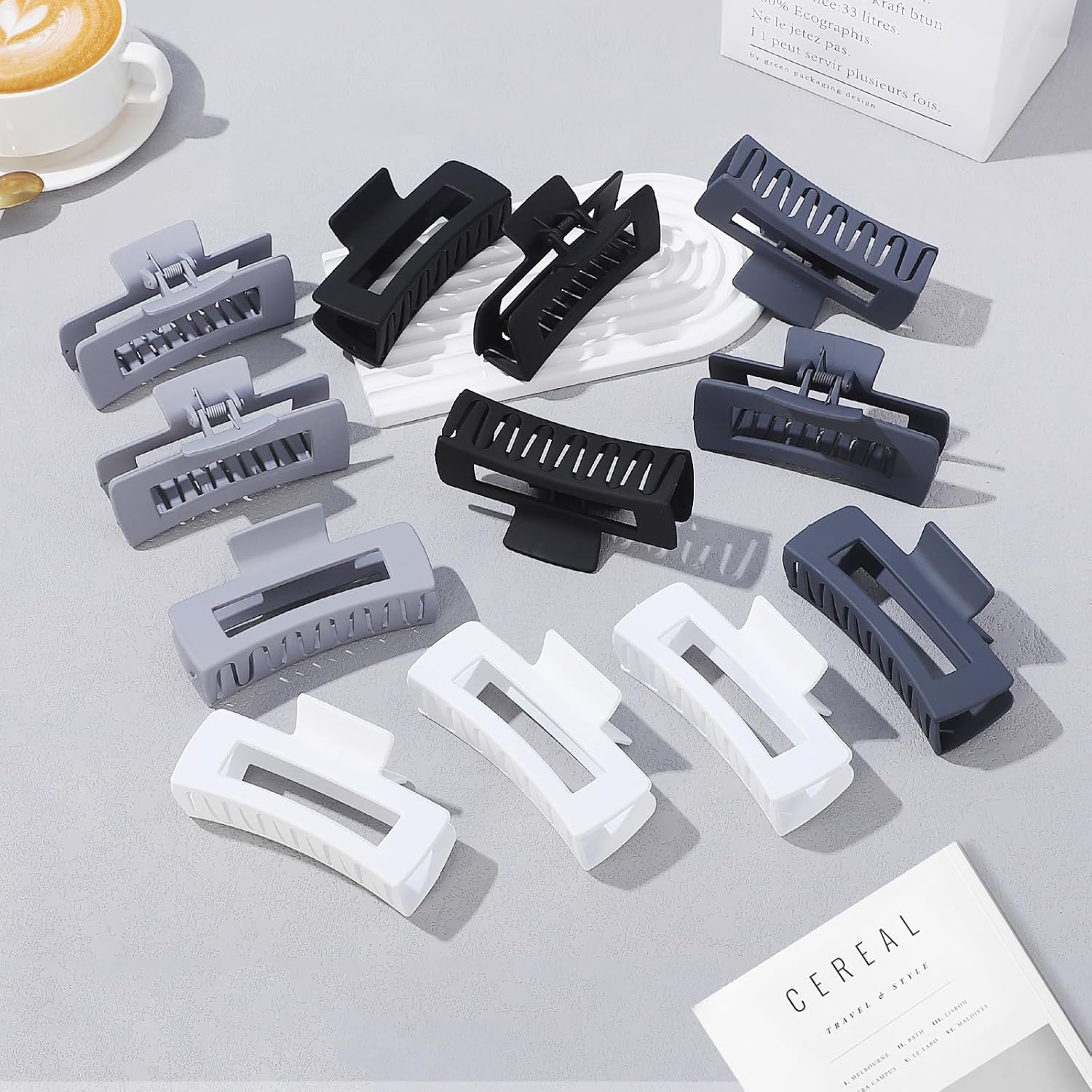 12 Pcs Large Hair Clips for Women, 4.2 Inch Square Claw Clips, Colorful Hair Claw Clips for Thick and Thin Hair, Bulk Hair Accessories for Women and Girls - Grey